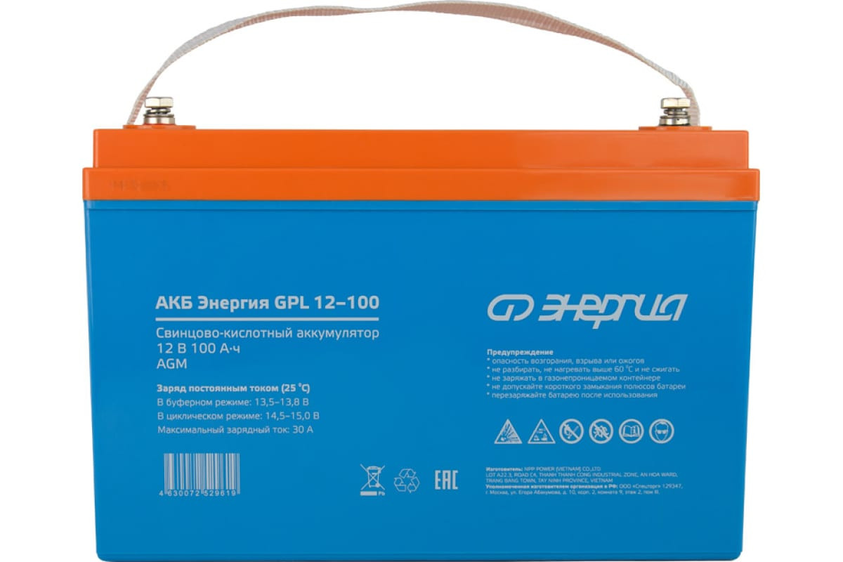Технология AGM обеспечивает длительный срок службы аккумулятора Энергия GPL 12-100 при работе без перерывов.