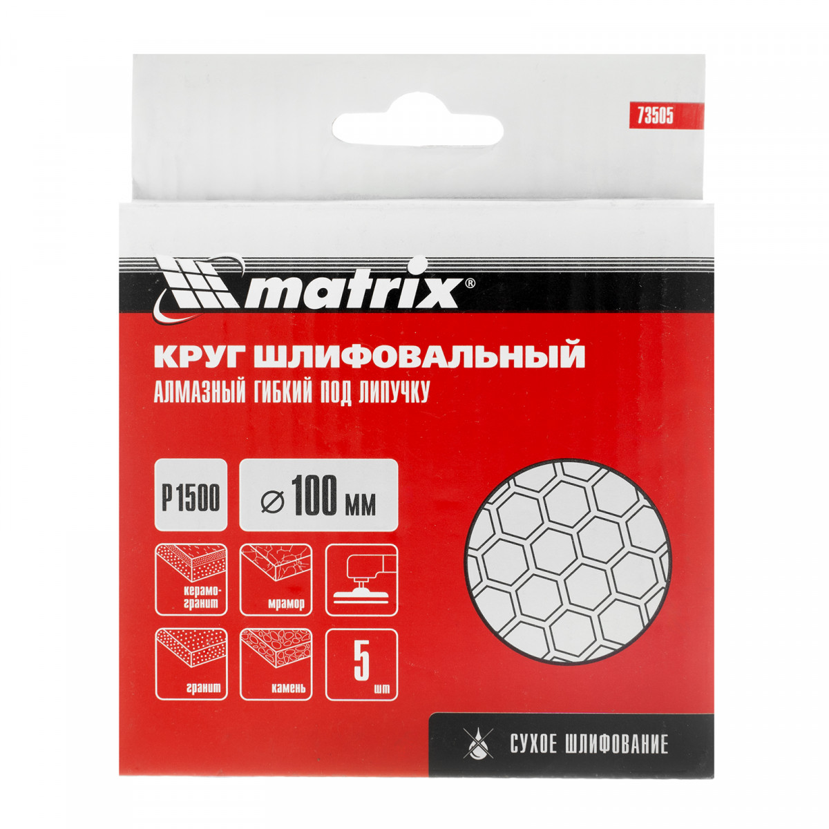 Алмазный гибкий шлифовальный круг, 100 мм, P1500, сухое шлифование, 5 шт. Matrix