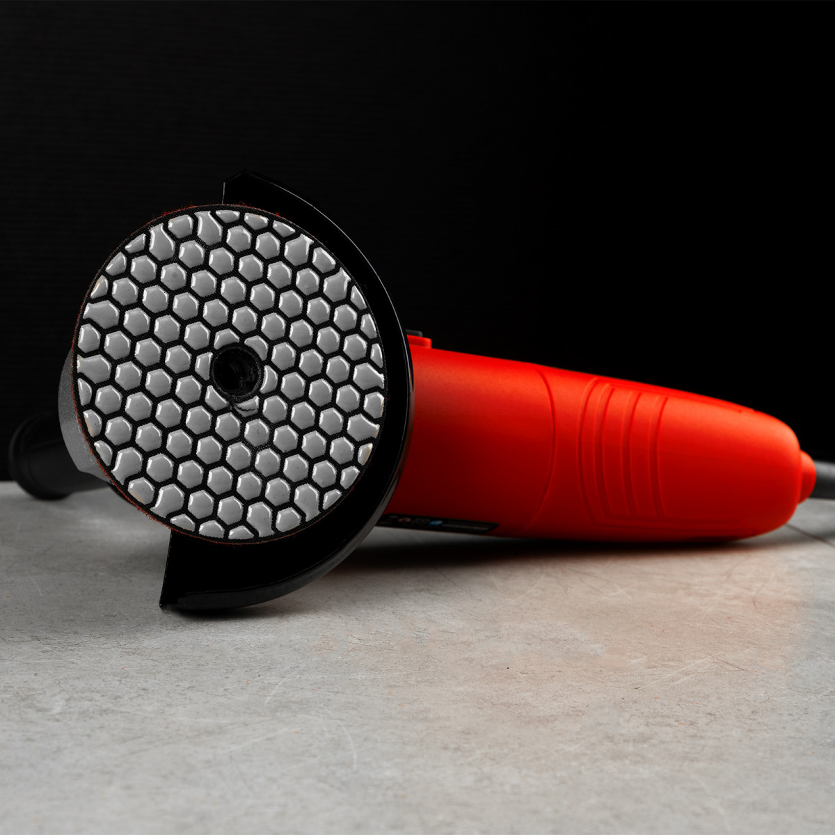 Алмазный гибкий шлифовальный круг Matrix 73503 диаметром 100 мм, с зернистостью P 400, 5 шт. в упаковке, предназначен для сухого шлифования гранита, мрамора, природного и искусственного камня, керамогранита. Используется на поверхностях разного цвета, преимущественно белых. Абразив с зернистостью P 400 снимает тонкий слой материала и применяется для чистового шлифования. Гибкий круг удобен для обработки предметов сложной формы. Оснастка используется на УШМ с установленной опорной тарелкой для АГШК.