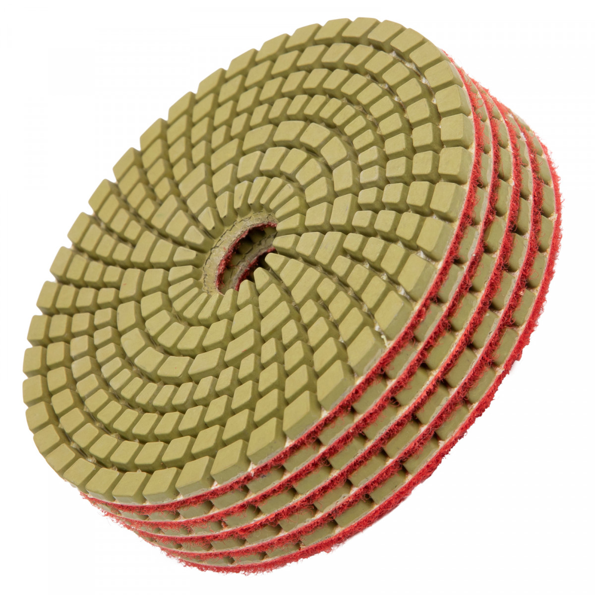 Алмазный гибкий шлифовальный круг Matrix 73511 диаметром 100 мм, с зернистостью P 800, 5 шт. в упаковке, предназначен для мокрого шлифования и используется при проведении строительных, отделочных и художественных работ. Абразив зернистостью P 800 позволяет проводить чистовую обработку, придавать гладкость гранитным, каменным, керамогранитным и мраморным поверхностям. Рабочая часть выполнена из светло-зеленого термопластика с алмазным напылением и подходит для использования на цветных и черных материалах. Гибкая основа круга облегчает шлифовку рельефных элементов. Круг используется на УШМ с установленной опорной тарелкой для АГШК.