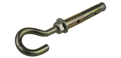 Анкер двухраспорный с полукольцом состоит из шпильки с резьбой с одной стороны и полукольцом с другой, как и обычный двухраспорный анкер он имеет 2 или 3 распорные гильзы и распорную часть на конус снизу. Для облегчения процесса монтажа комплектуется гайкой.