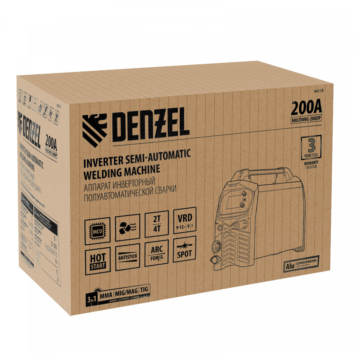 Инверторный аппарат полуавтоматической сварки Denzel MultiMIG-200DP Synergy Double Pulse 94313 предназначен для сварки алюминия и его сплавов, сварки нержавеющей стали и ее сплавов, в том числе тонколистовой работы на постоянном токе, а также в режимах Пульс и Двойной пульс.
