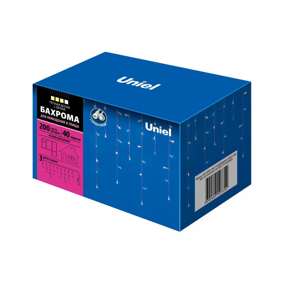 Бахрома с эффектом мерцания 3м 200 свет соединяемая теплый белый и белый свет провод прозр Uniel