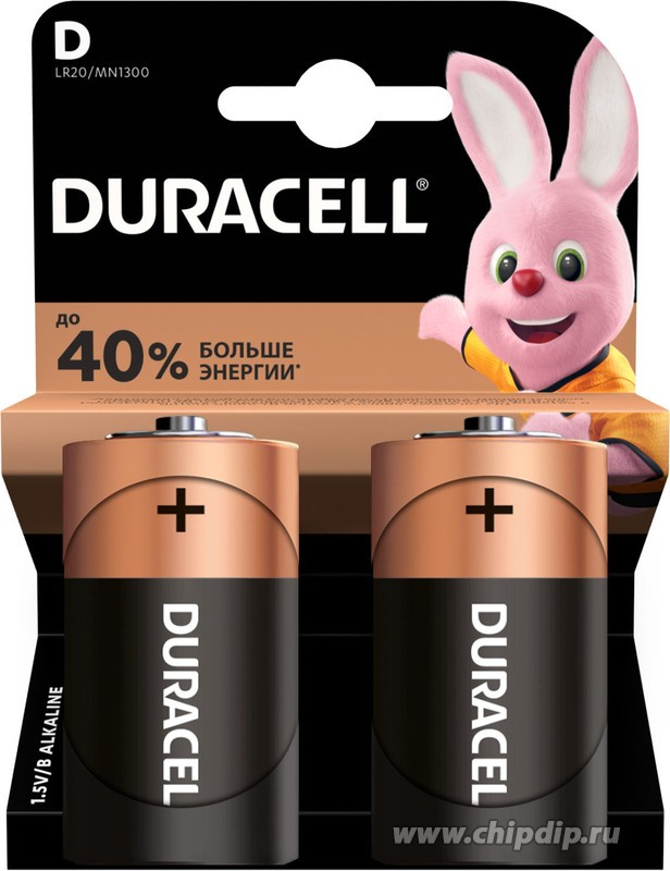 Батарейка DURACELL Basic D алкалиновые 1.5V LR20 2шт