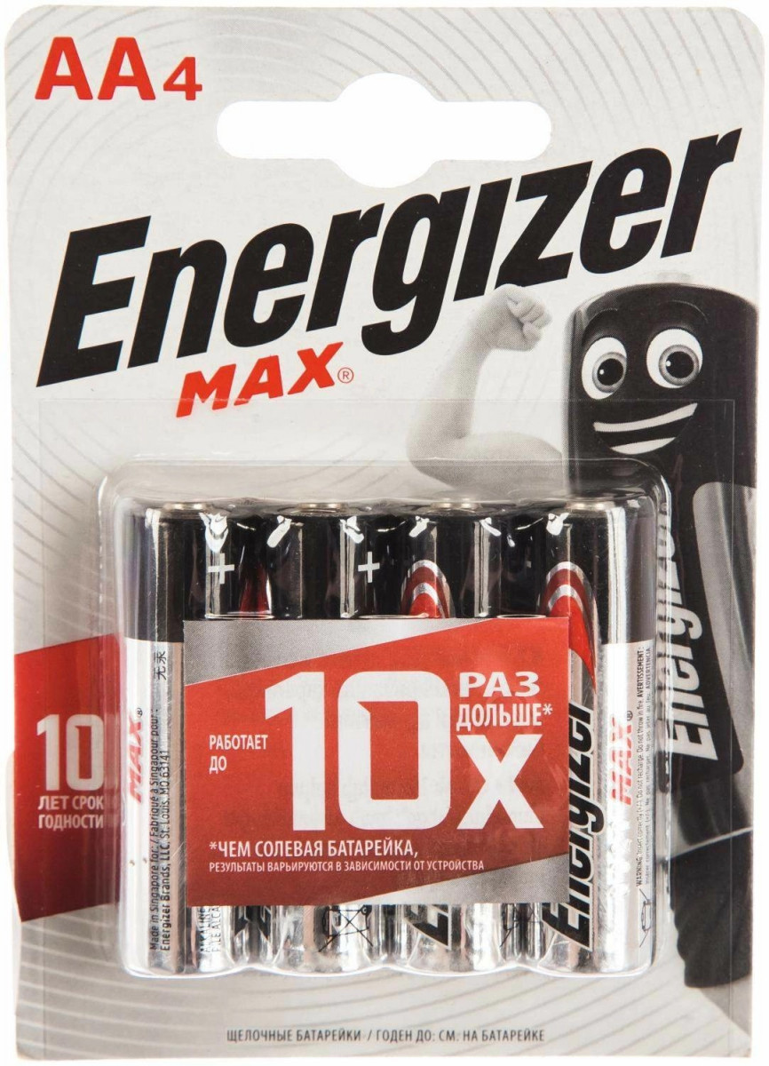 Батарея Energizer MAX E91/AA BP4 создана с применением современных технологий. Благодаря этому она имеет ёмкость на 30-45 % больше, чем у источников питания предыдущего поколения. Это делает её подходящей для использования в устройствах с высоким энергопотреблением – например, фотоаппаратах или радиоуправляемых игрушках.ДОЛГОВЕЧНОСТЬ