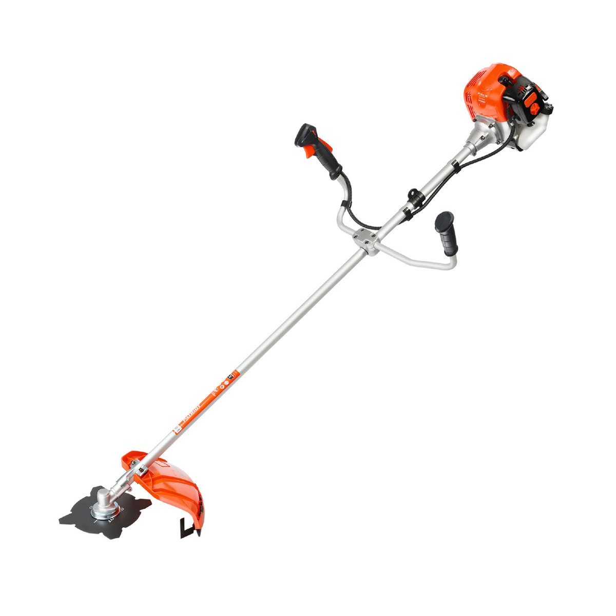 Подходит как для травы так и для кустарников. Очень удобный ремень.Легко заправлять леску. Есть нож в комплекте.