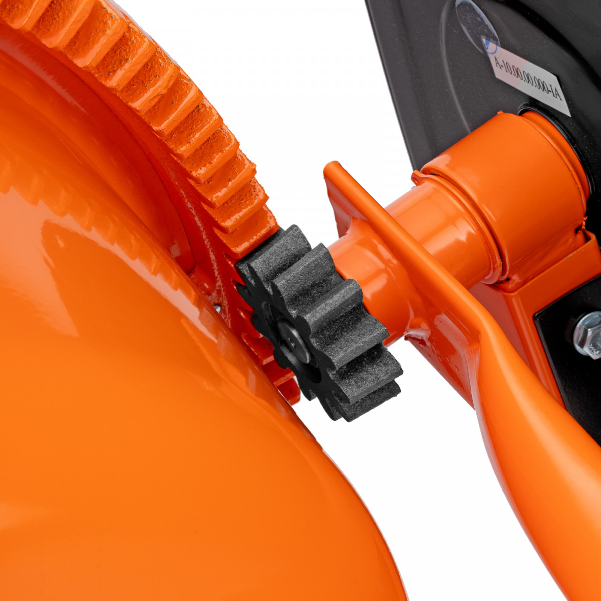 - Удобная загрузка и выгрузка смеси — барабан наклоняется при помощи маховика и легко фиксируется в нужном положении.