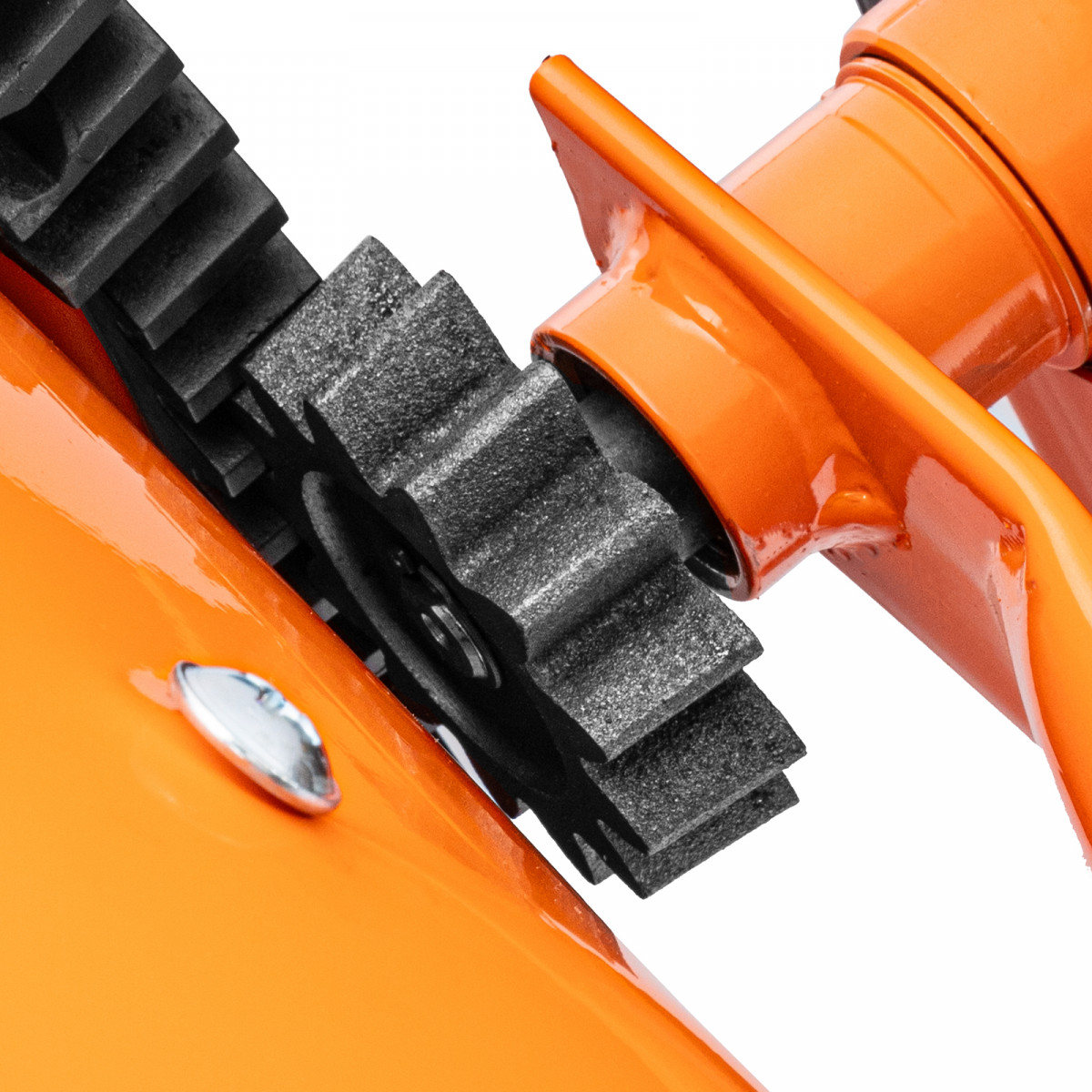• Удобная загрузка и выгрузка смеси — барабан наклоняется при помощи маховика и легко фиксируется в нужном положении.
