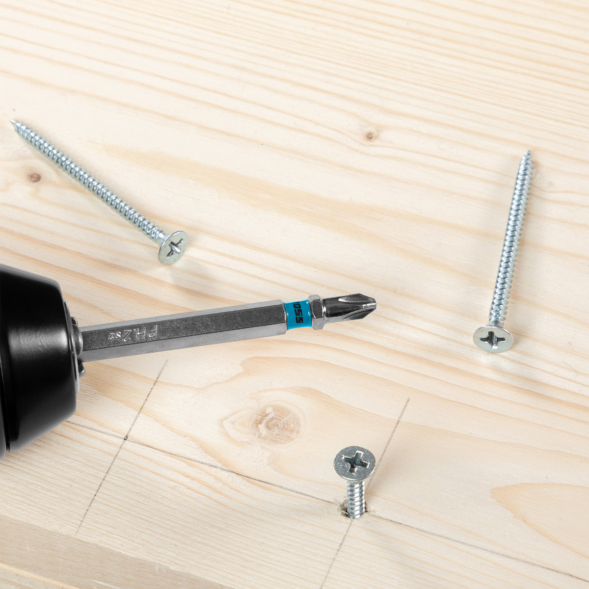 - Удобная эксплуатация — намагниченный шлиц облегчает работу и позволяет направлять шуруповерт с насаженным крепежом одной рукой, а другой придерживать закрепляемую деталь.