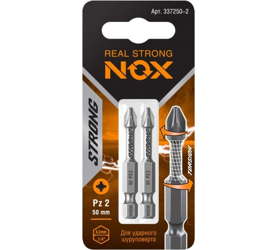 Торсионная бита NOX STRONG – профессиональная бита c повышенным ресурсом и износостойкостью. Предназначена для использования с электроинструментом в ударном режиме.
