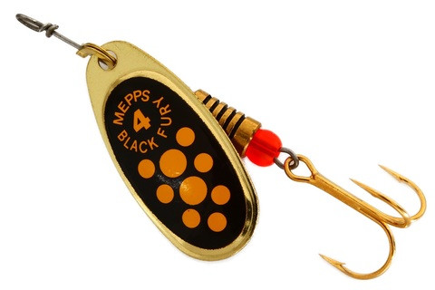 При вращении лепестка, благодаря цветным точкам наклеек и ее черной подложке, приманка напоминает крупное насекомое. Поскольку блесны оснащаются лепестками различных цветов, то всегда есть возможность выбора наиболее удачного сочетания. В одном случае, предпочтительней окажется яркая окраска, контрастирующая с окружающим фоном, в другом — «покровительственная», т.е. маскирующая (такой вариант очень эффективен при охоте за осторожной рыбой). Иногда бывает, что к успеху приводит чисто механический подбор цвета приманки, поскольку нет никаких видимых оснований для конкретного выбора. Часто в информационном материале MEPPS обращает внимание рыболовов на сходство окраски вращающихся блесен и водных объектов, таких как насекомые и мелкие рыбешки. В отношении последних, у опытных рыболовов существуют обоснованные сомнения. Весьма приблизительной имитацией рыбки, из вращающихся блесен, может служить лишь AGLIA LONG. В основном, это достоинство воблеров и колеблющихся блесен. Дело в том, что не только мирные, но и хищные рыбы в раннем периоде своего развития проходят насекомоядную стадию. Естественно, что рефлекторная память сохраняется очень долго, этим, вероятно, и объясняются феноменальные способности COMET BLACK FURY.