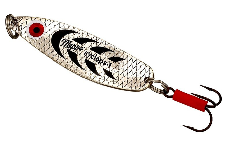 MEPPS SYCLOPS — одна из лучших колеблющихся блесен в мире, имеющая превосходно отработанную форму. Старинные прототипы, схожие с этой блесной, в наше время практически не сохранились. SYCLOPS унаследовал от них двойной прогиб в горизонтальной проекции, обеспечивающий при проводке максимальное сходство с движениями живой рыбы.Блесна не имеет мягкого профиля, ее форма образована сопряжением плоскостей, в том числе, образующих в хвостовой части «ребро устойчивости», гарантирующее SYCLOPS устойчивую, без «свалов», игру как на спокойной воде, так и при любой скорости течения. Благодаря идеально расположенному центру тяжести и удачному соотношению между весом и площадью приманки, все размеры SYCLOPS сохраняют превосходную игру даже при свободном падении после прекращения проводки. Как известно при ловле лосося и щуки такой приём бывает незаменим. Кроме того, эффект от движения блесны значительно усиливается за счет игры света, отражаемого плоскостями. Стандартный вариант SYCLOPS имеет окраску серебряного, золотого и черного цветов, с красным и черным рефлекторным рисунком. Кроме этого, MEPPS производит блесны, декорированные желтой наклейкой с красным рисунком. SYCLOPS — практически идеальная приманка для всех видов хищных рыб на всех водоемах и при любых условиях ловли.Сложный профиль имеет десять граней отражения света. Его движение, благодаря идеальным колебаниям в различных плоскостях, очень точно имитирует живую рыбу - идеальную жертву хищника. Устойчивость игры гарантирована при любой скорости проводки. Такая характерная особенность облегчает и быстрый охват больших участков стоячих вод (щука, судак, окунь), и обеспечивает удобную ловлю на течении (лосось, кумжа, форель).