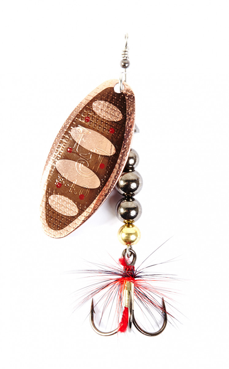 Главный элемент блесен-вращающейся лепесток. Он очень легок, сделан из латуни и обладает хорошими динамическими показателями при вращении в воде, что позволяет делать проводку приманки на минимальной скорости, что очень привлекательно для любой хищной рыбы. Лепесток включается в работу сразу, как только блесна начинает движение. Лепестки окрашены с двух сторон. Под каким бы углом хищная рыба не смотрела на приманку, ее расцветка остается одинаково привлекательной, что повышает интерес к блесне и, в итоге, приводит к результативной атаке.