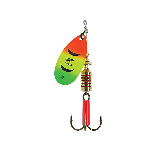 Aglia Fluo - это приманка, призванная расширить модельный ряд одной из самых популярных в мире вращающихся блесен от французской компании Mepps. От классической Aglia она отличается покрытием лепестка, имеющего яркие флуоресцентные цвета. Тройник некоторых моделей оснащается дополнительным отрезком кембрика - еще одним элементом, вынуждающим хищника на атаку. В линейку этих сверхпопулярных приманок входят как небольшие экземпляры для поклонников рыбалки на легкие снасти, так и большие и тяжелые для охоты на солидные трофеи. Благодаря округлой геометрии лепестка, Aglia Fluo способна "заводиться" и стабильно работать при самых медленных проводках. Вращение лепестка по отношению к оси составляет приблизительно 60°, а значит, блесна имеет большое лобовое сопротивление и при быстрой проводке или на стремнине будет выталкиваться на поверхность. В качестве подходящих водоемов стоит отдать предпочтение тем, в которых либо вовсе отсутствует течение, либо оно минимальное. В зависимости от веса и размера выбранной Вами