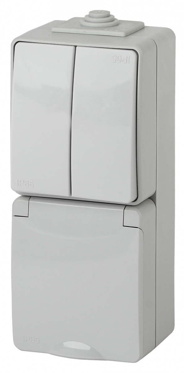Блок ЭРА розетка+выключатель двойной верт. IP65 16A(10AX)-250В ОУ Эра Эксперт серый 11-7608-03