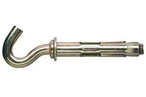 Болт анкерный с крюком - это резьбовая шпилька, на одном конце которой открытый крюк, а на другом - цанга (распорный элемент). Шпилька помещена в гильзу (внешняя оболочка болта). Анкерный болт с крюком изготавливается из желтопассивированной стали. Болт анкерный с крюком необходим в том случае, когда нужно закрепить тяжёлые съёмные конструкции. Это может быть и временное крепление такелажных изделий: цепи, тросы и т.п. крепление анкерных болтов с крюком осуществляется к таким полнотелым материалам, как бетон, кирпич или природный камень.
