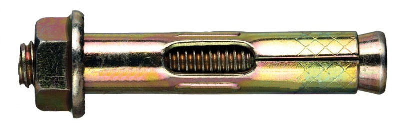 Анкерный болт с гайкой используется для крепления различных конструкций (стальные конструкции, барьеры, ограждения и т.д.) в полнотелых материалах. Состоит из втулки, шпильки с конусом и гайки прокладки.
