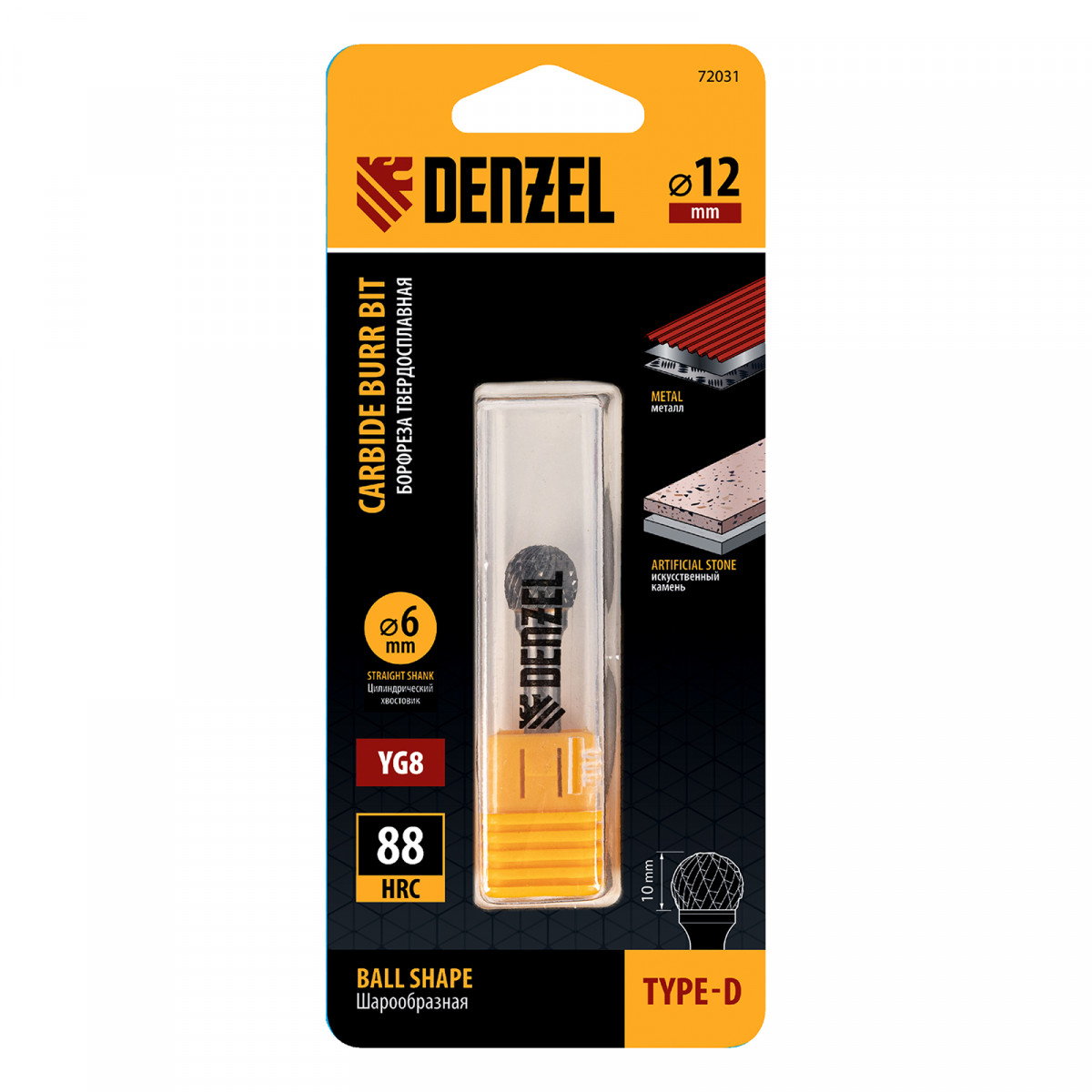 Борфреза по металлу твердосплавная, шарообразная, тип-D, 12 мм Denzel