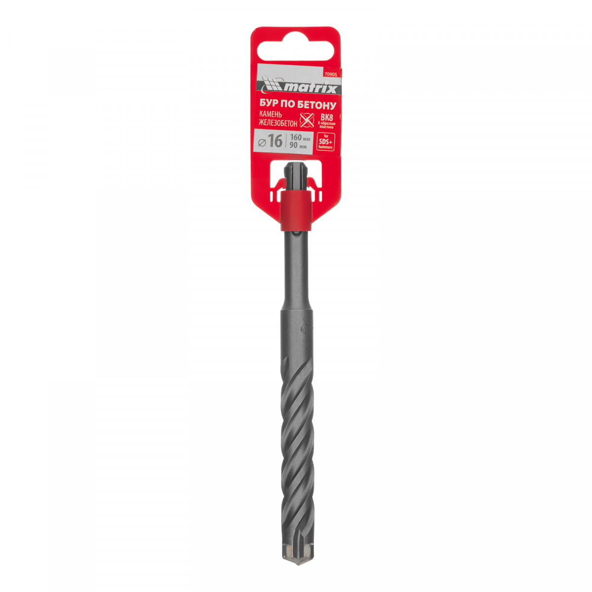 Бур по бетону Matrix 70905 длиной 160 мм, с хвостовиком SDS-plus и крестовой пластиной, предназначен для получения отверстий диаметром 16 мм в бетоне, камне и кирпиче. Крестовая пластина обеспечивает эффективную работу с твердыми материалами, в том числе армированным бетоном. Бур устанавливается в патрон перфоратора и используется во время проведения строительных работ.