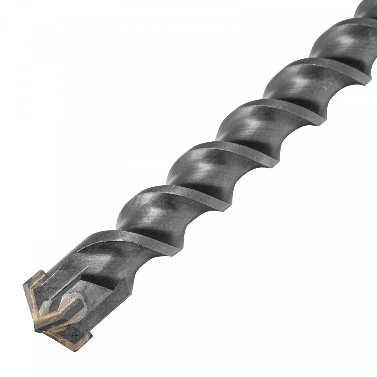 - Износостойкость — спиральная часть бура выполнена из легированной стали 40Х и закалена до необходимой твердости, поэтому выдерживает высокие динамические нагрузки без риска деформации.