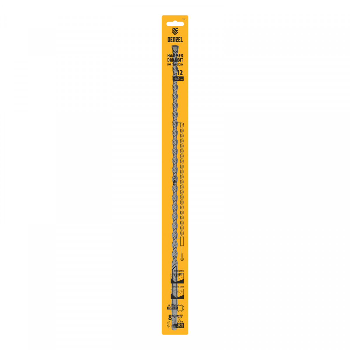 Бур по бетону, двойная спираль, три пылеотводящие кромки, 12 x 460 мм DENZEL