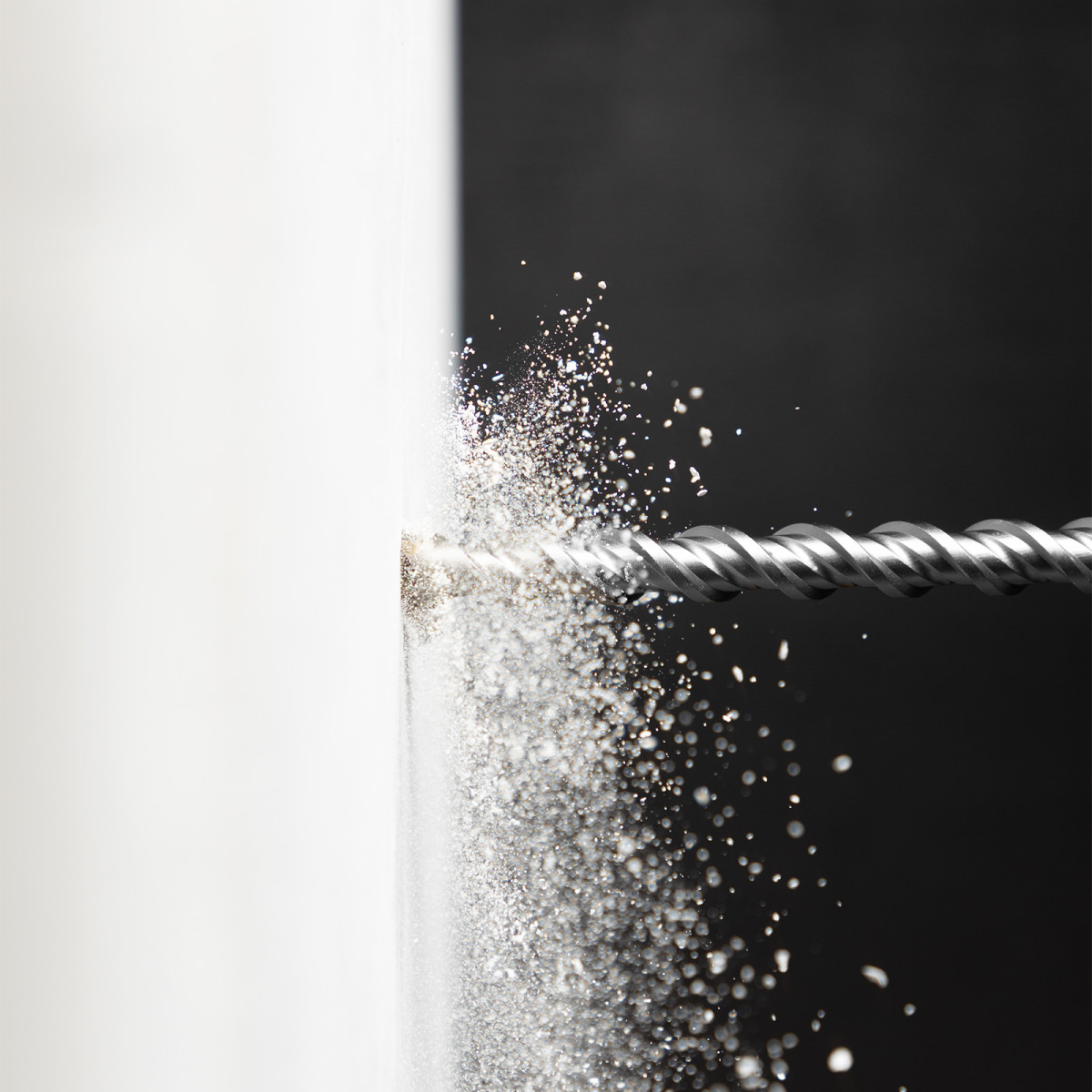 - Эффективный отвод шлама — двойная спираль и канавка с дополнительным желобом обеспечивают быстрое удаление пыли, что предотвращает перегрев рабочей части и продлевает срок службы бура.