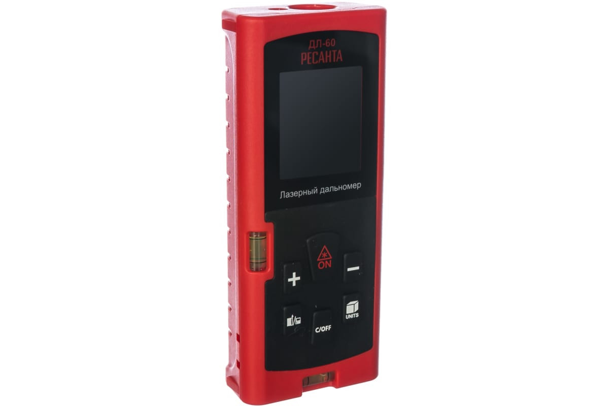 Дальномер Ресанта ДЛ-60 61/10/516 оснащен следующими функциями: измерение объема, измерение площади, вычисления по Пифагору. Он широко применяется при строительстве и ремонте, а также незаменим в труднодоступных местах, таких как колодцы и шахты. Автоматическое отключение лазера происходит через 20 секунд, а самого устройства - через 5 минут.
