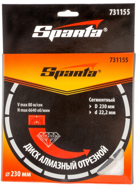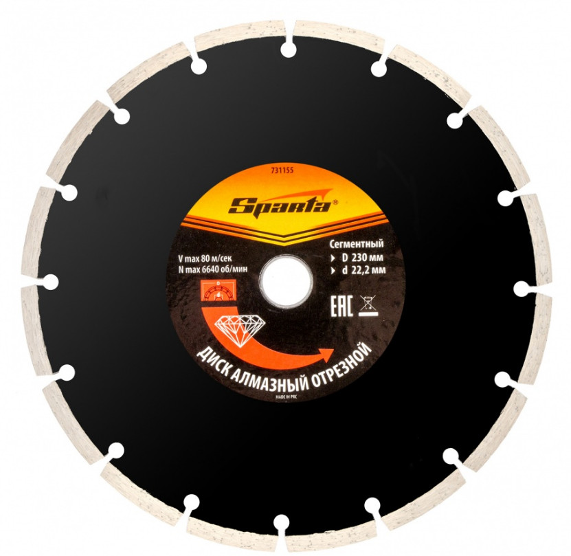 Продолжительный ресурс работы обеспечивается высокой концентрацией алмазного порошка в оптимально подобранной связке. Благодаря наличию «прорезей» сегментов в диске процесс обработки осуществляется с эффективным выбросом продуктов резания. Диск используется при сухой резке бетона, железобетона, мрамора.