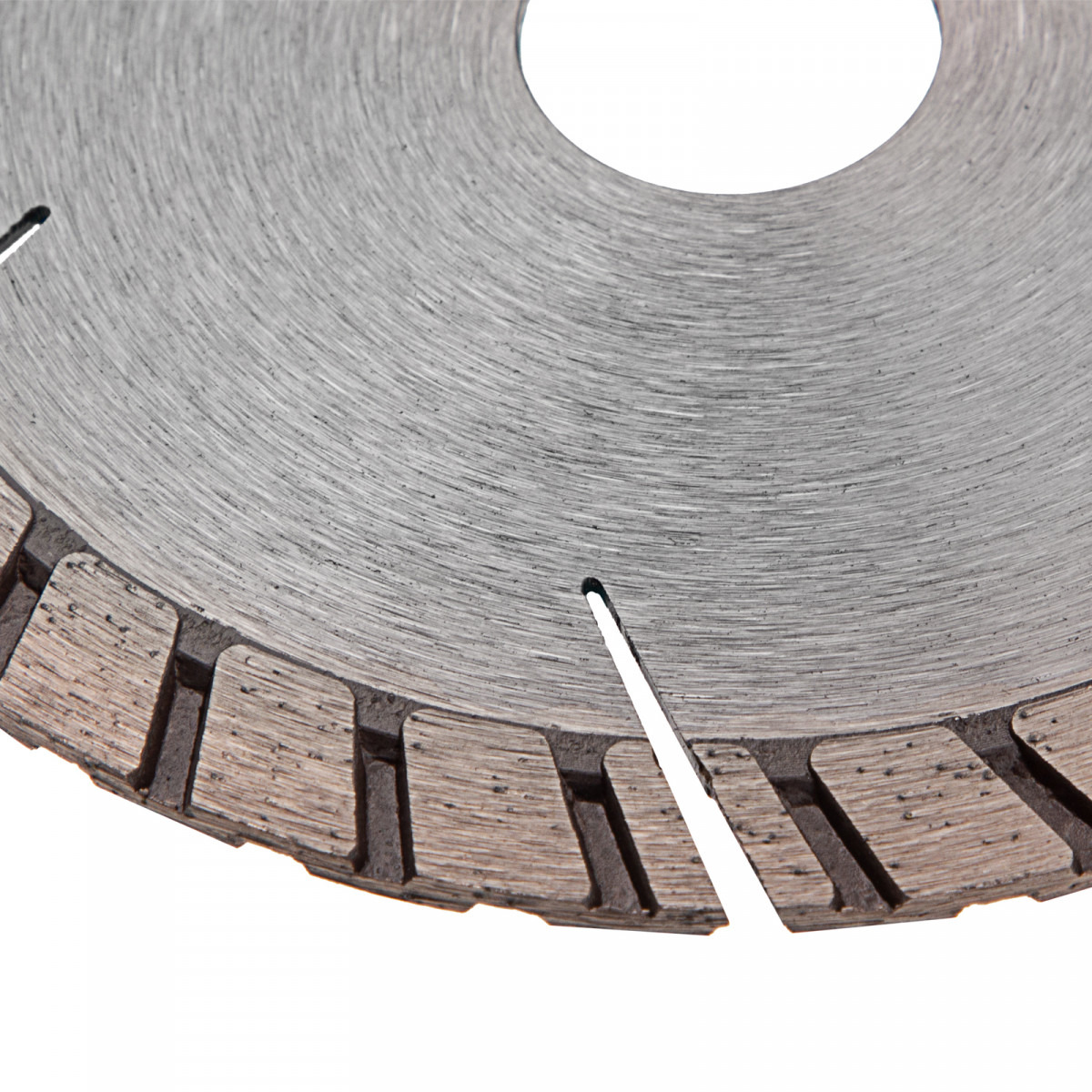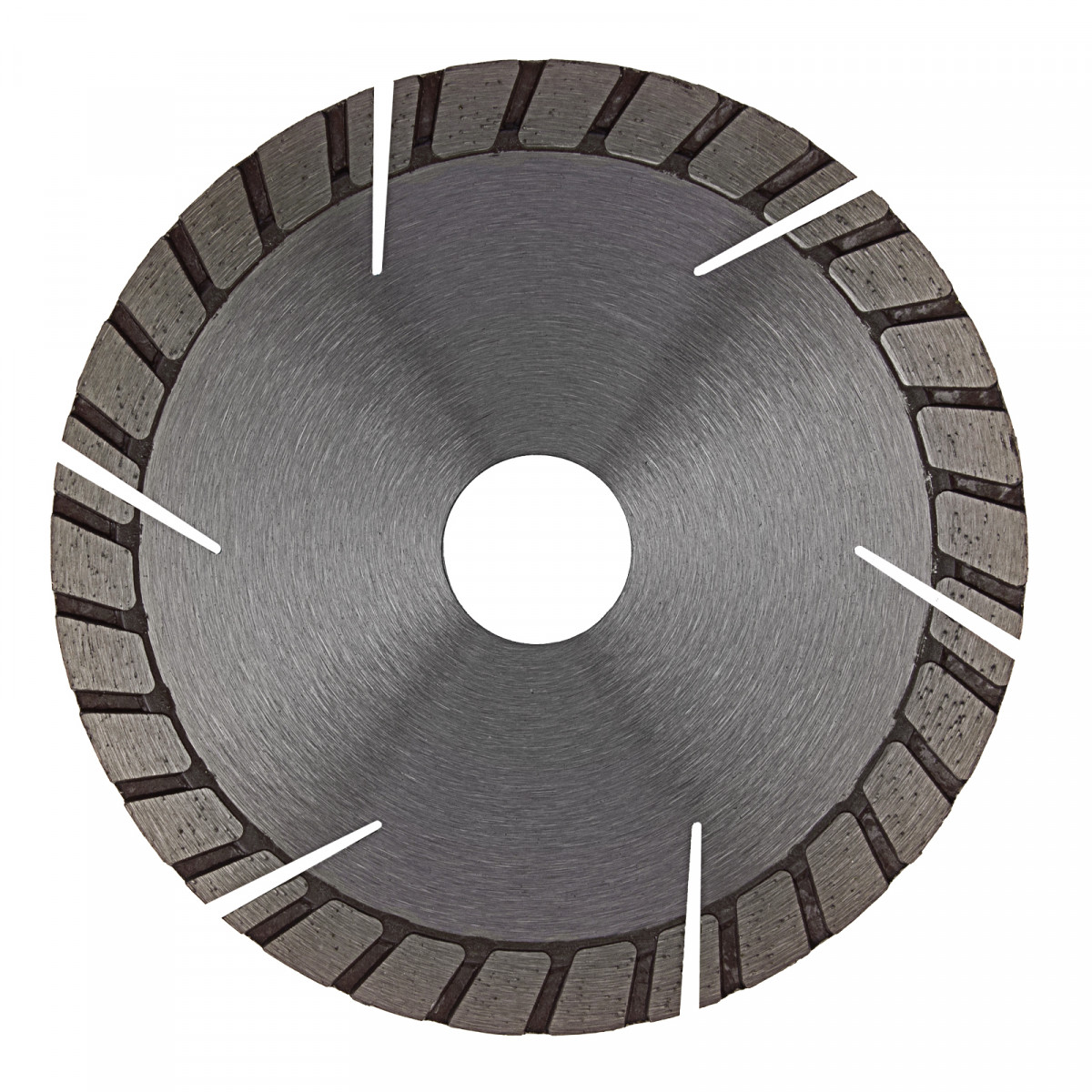 • Эффективная работа — благодаря турбо-сегментной форме диск быстро режет материалы, в т.ч. армированный бетон, водяное охлаждение не требуется.