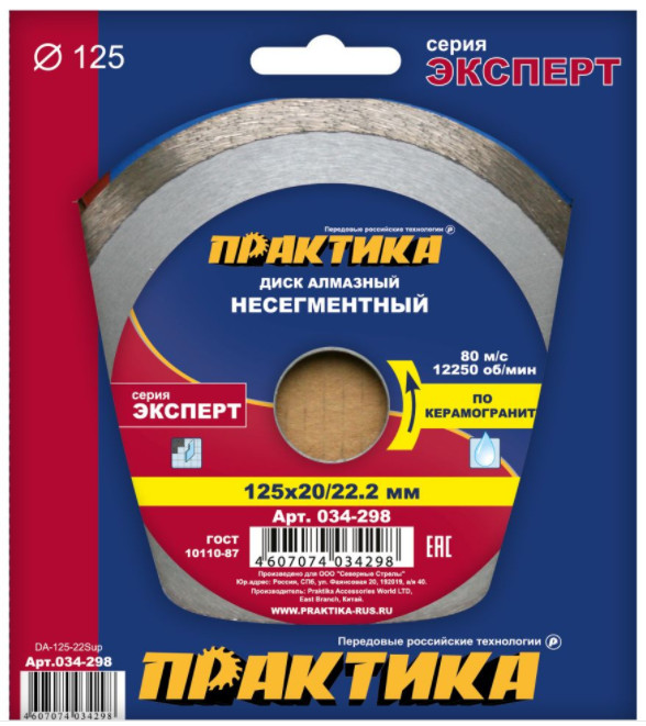 Диск алмазный 125*20/22 мм несегментный "Эксперт-керамогранит" ПРАКТИКА