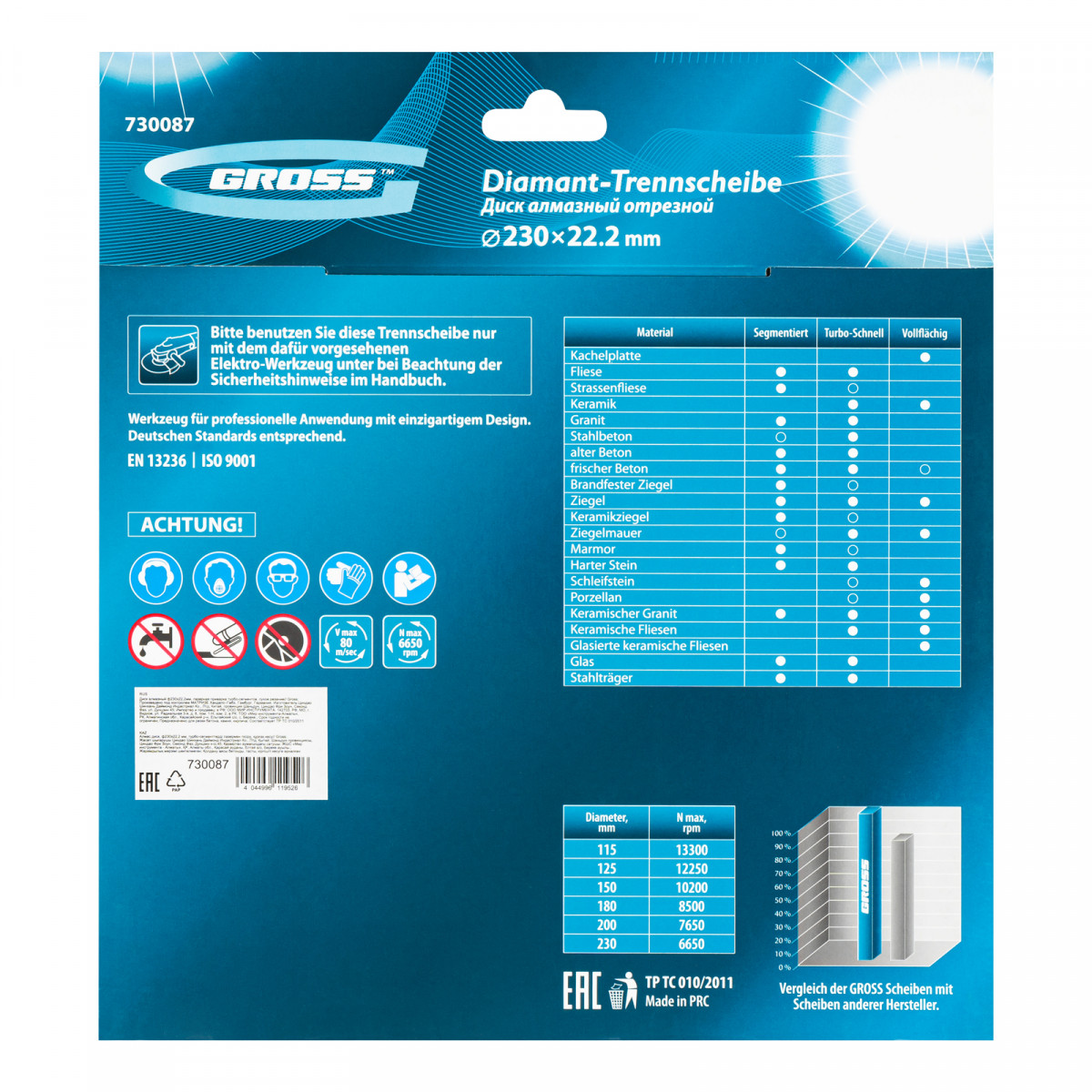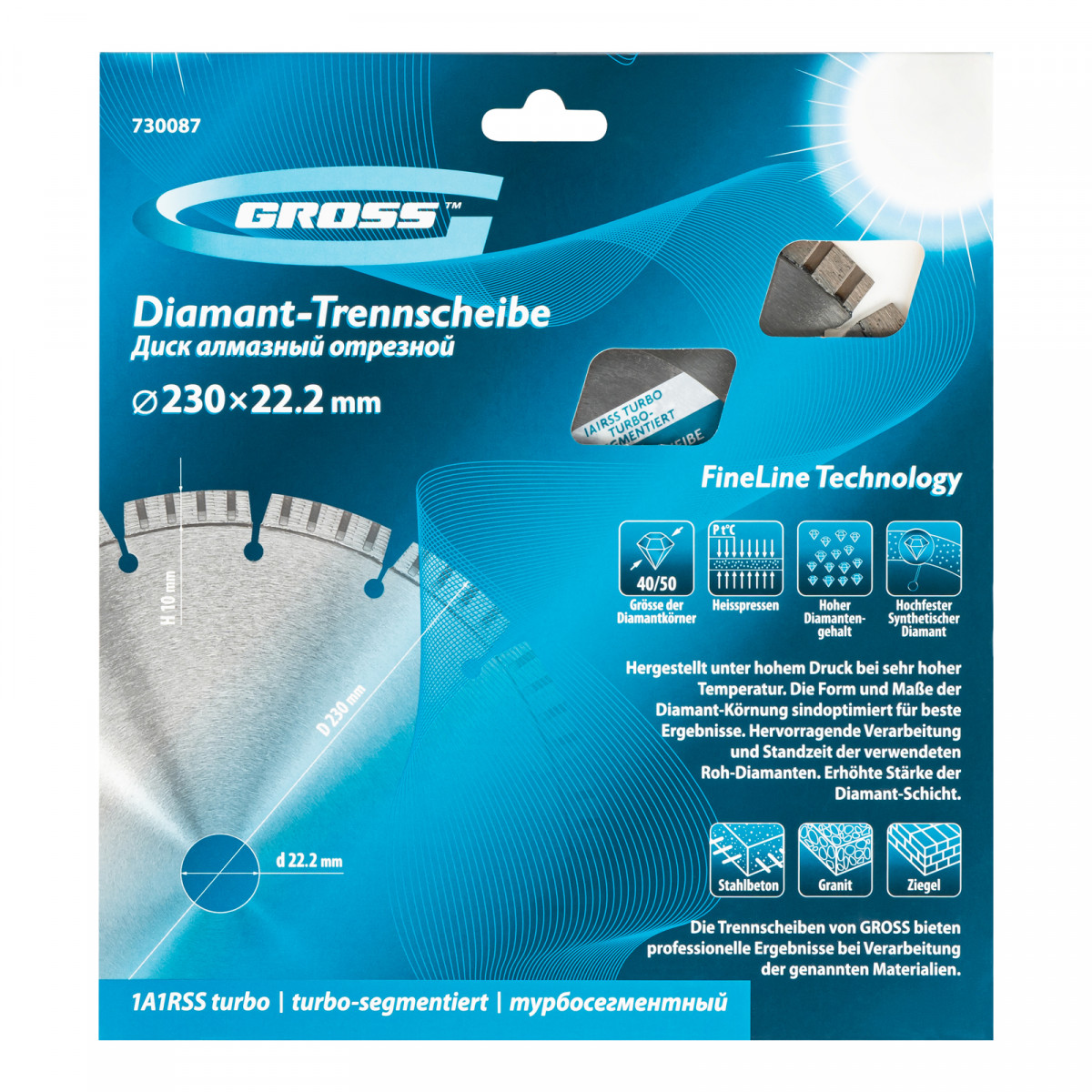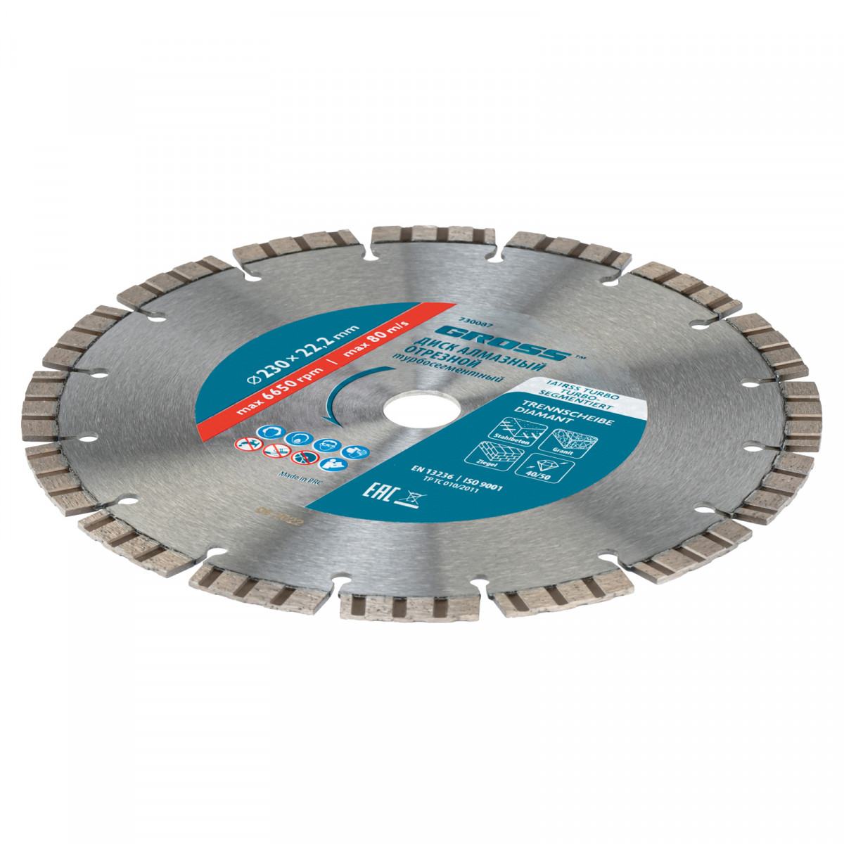 Диск алмазный, 230 х 22.2 мм, лазерная приварка турбо-сегментов, сухая резка Gross