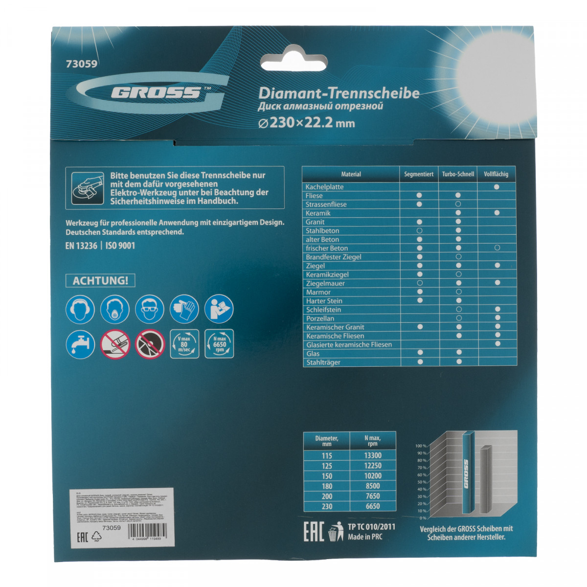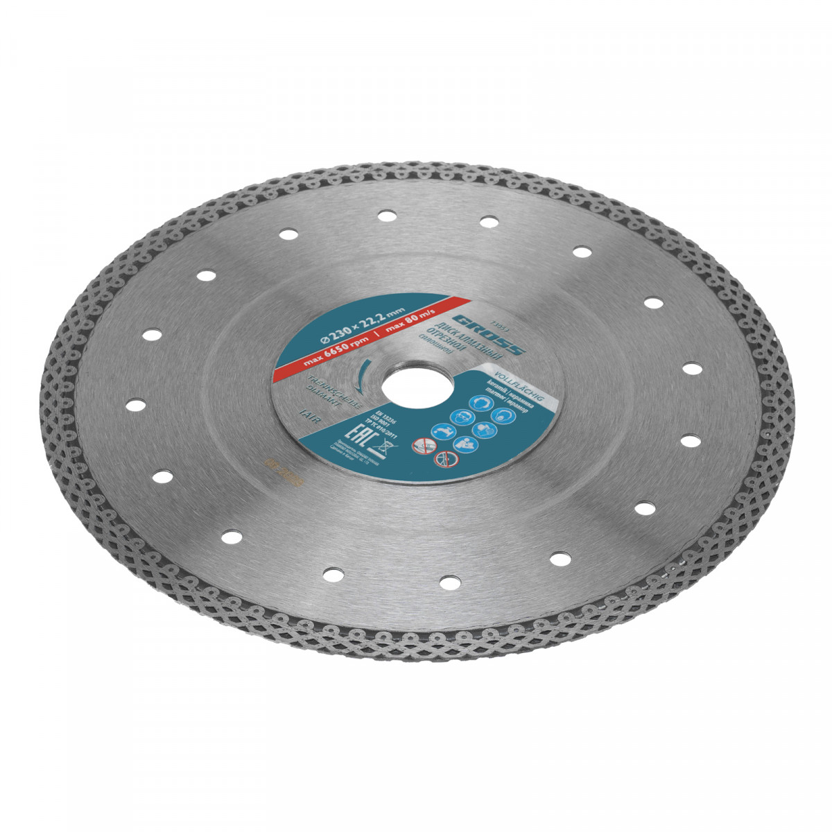 Диск алмазный, 230 х 22.2 мм, тонкий, сплошной (Jaguar) мокрая резка Gross
