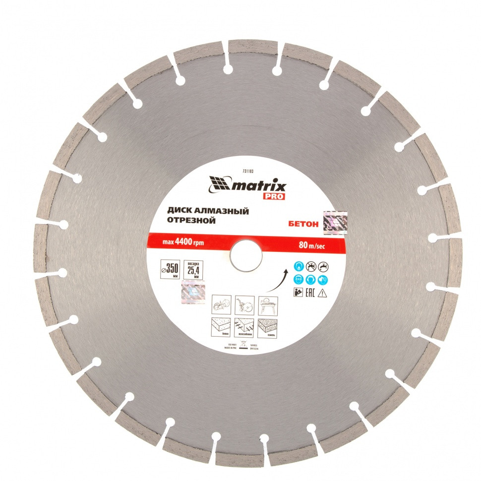 Диск алмазный 350 х 25.4 мм, "Железобетон", сухой/мокрый рез, Pro Matrix