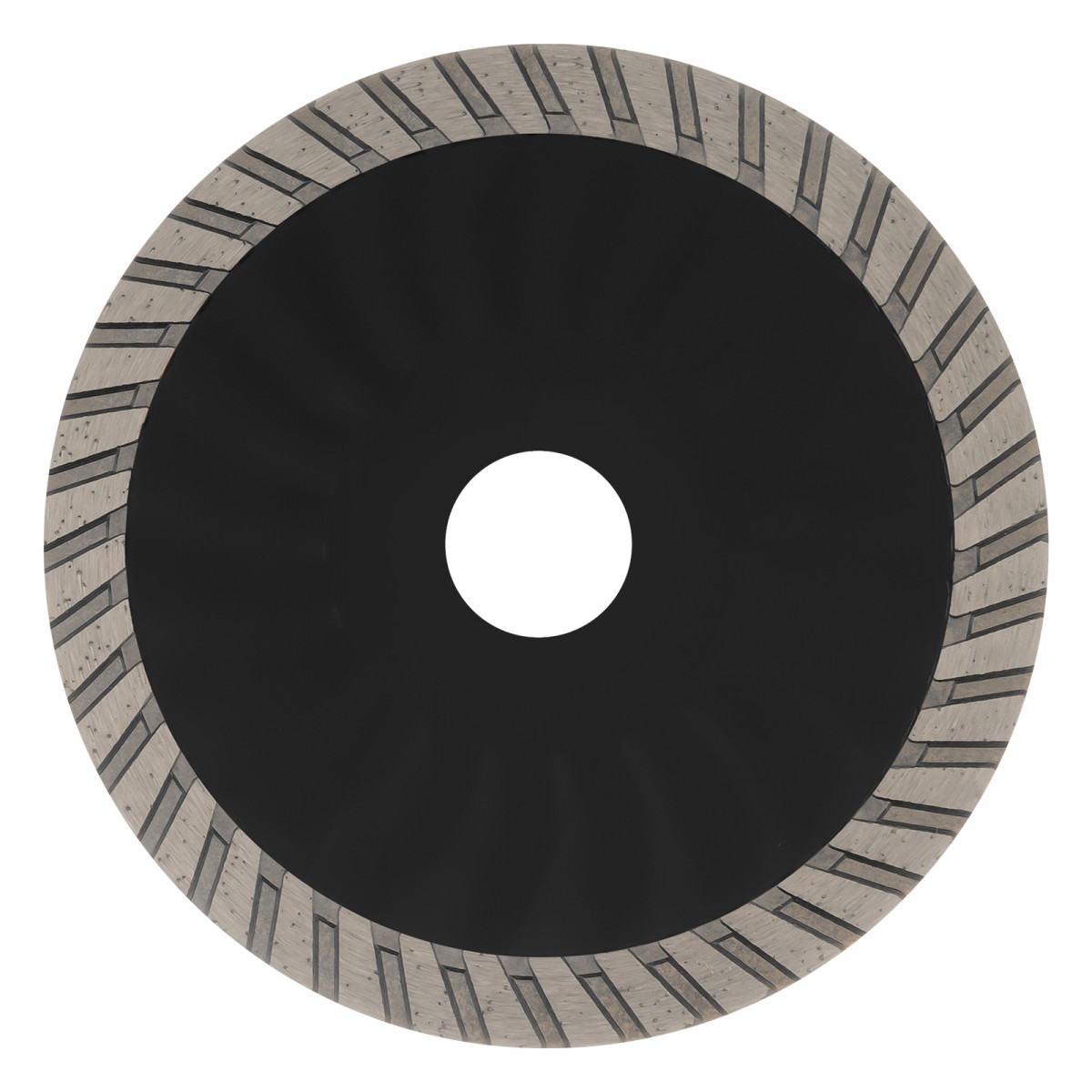 Алмазный отрезной диск Турбо Denzel 731080 диаметром 125 мм, с посадочным размером 22,2 мм и слоем сверхтвердых алмазов HWD92, устанавливается на углошлифовальную машину (УШМ) или штроборез. Используется для сухого резания камня, бетона (в том числе армированного), гранита, кирпича. Рекомендуемая частота вращения — 12250 об/мин.