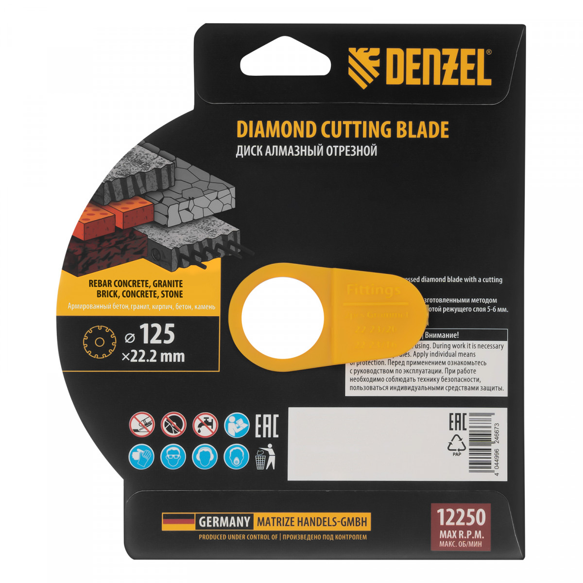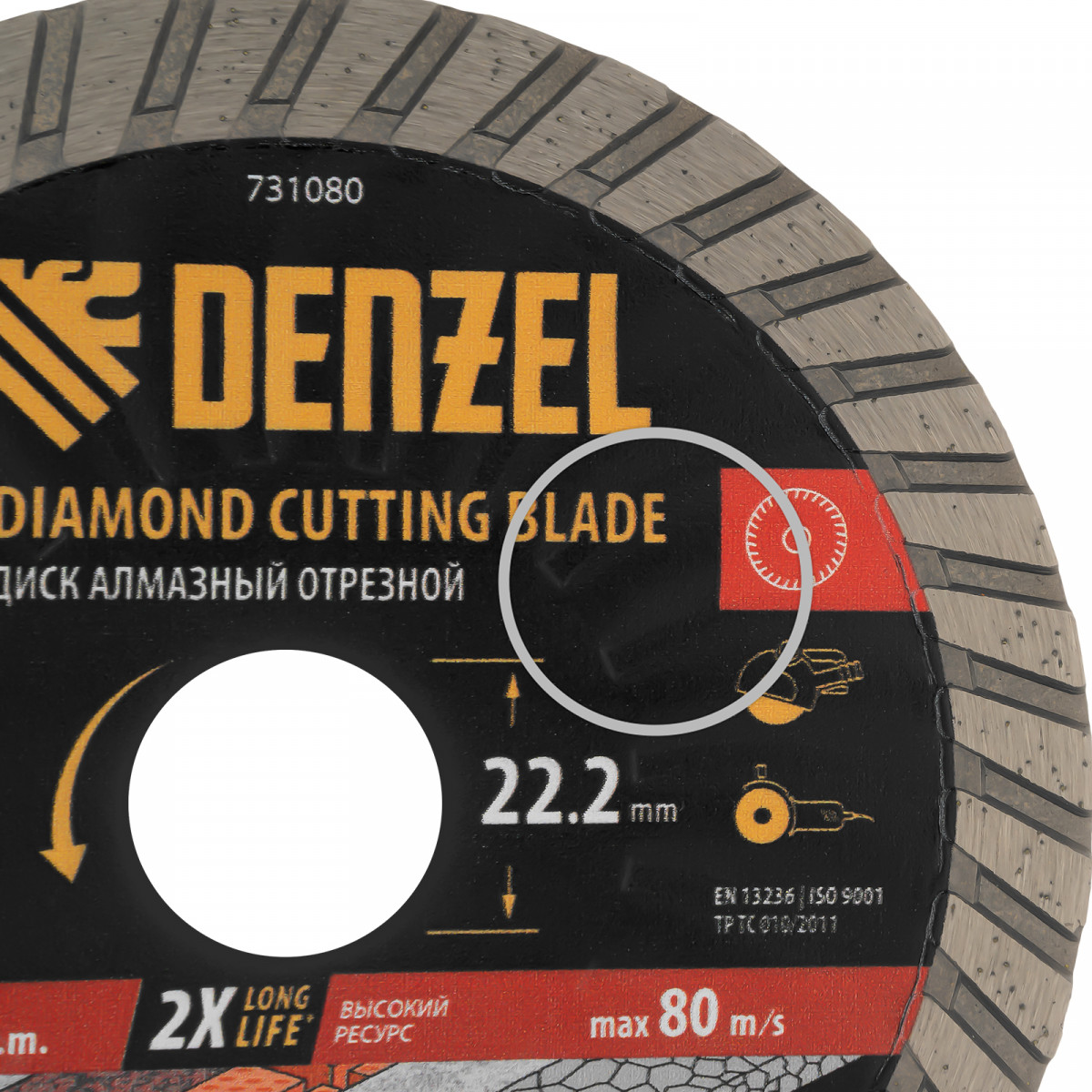 Диск алмазный отрезной DENZEL Турбо, ф125 х 22.2 мм, сухой рез, HWD92, турбированная рабочая часть, круг, 731080