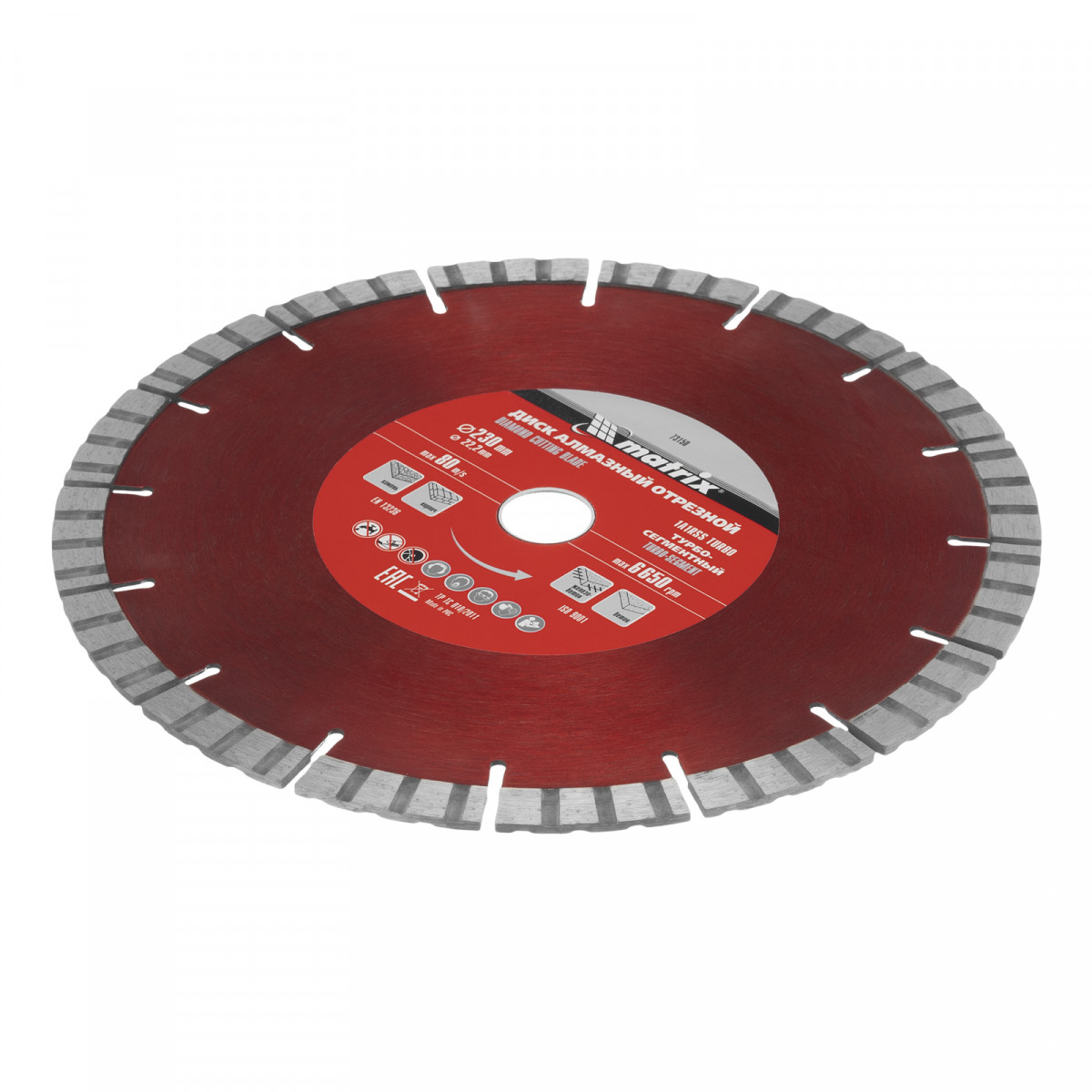 Диск алмазный, отрезной Турбо-сегментный, 230 х 22.2 мм, сухая резка Matrix Professional