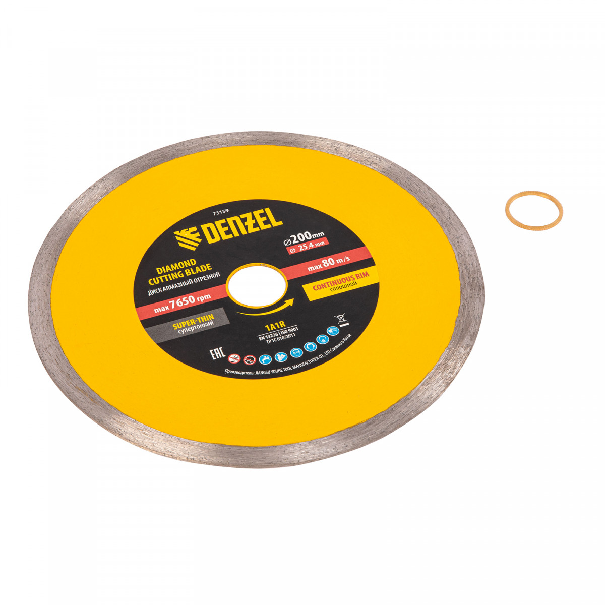 Диск алмазный сплошной, супертонкий, 200 х 25,4 мм, горячее прессование, мокрое резание Denzel