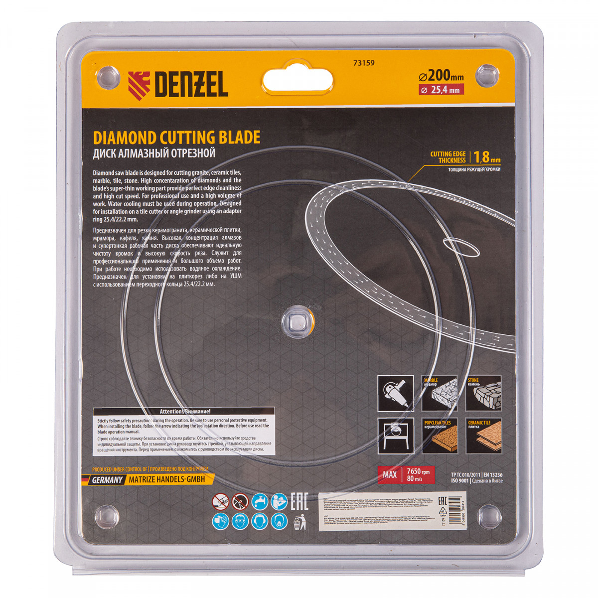 Алмазный диск ТМ Denzel "Сплошной" арт 73159, ф200 х 25,4 мм, предназначен для мокрого резания мрамора, керамогранита и керамическую плитки, камня. Устанавливается на плиткорез или УШМ (болгарку) с посадочным диаметром 25,4 мм. Высокая концентрация алмазов и супертонкая рабочая часть диска обеспечивает идеальную частоту кромок и высокую скорость реза.Диск произведен по технологии горячего прессования с увеличенной шириной режущей кромки (10мм) подходит для профессионального использования и больших объемов работ.