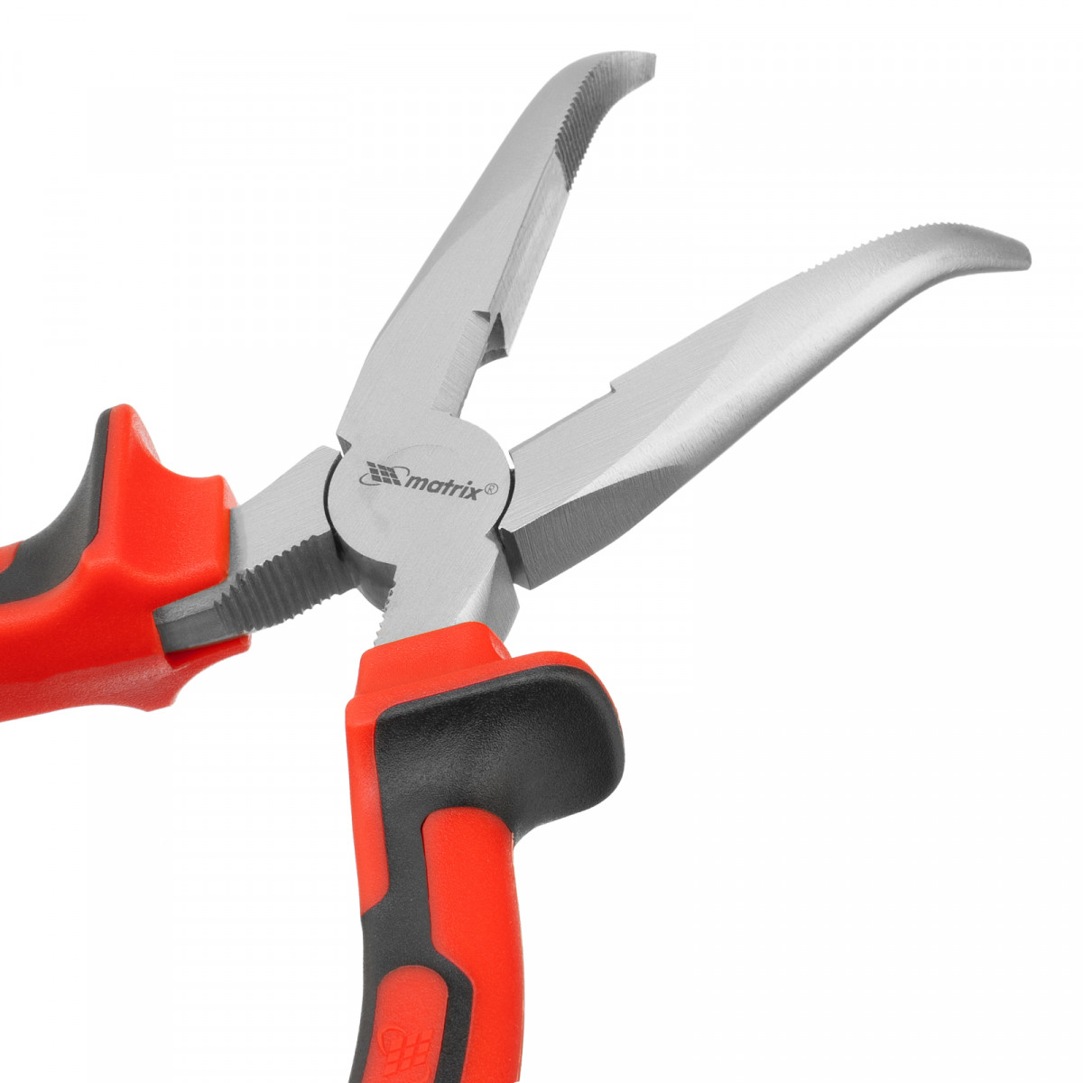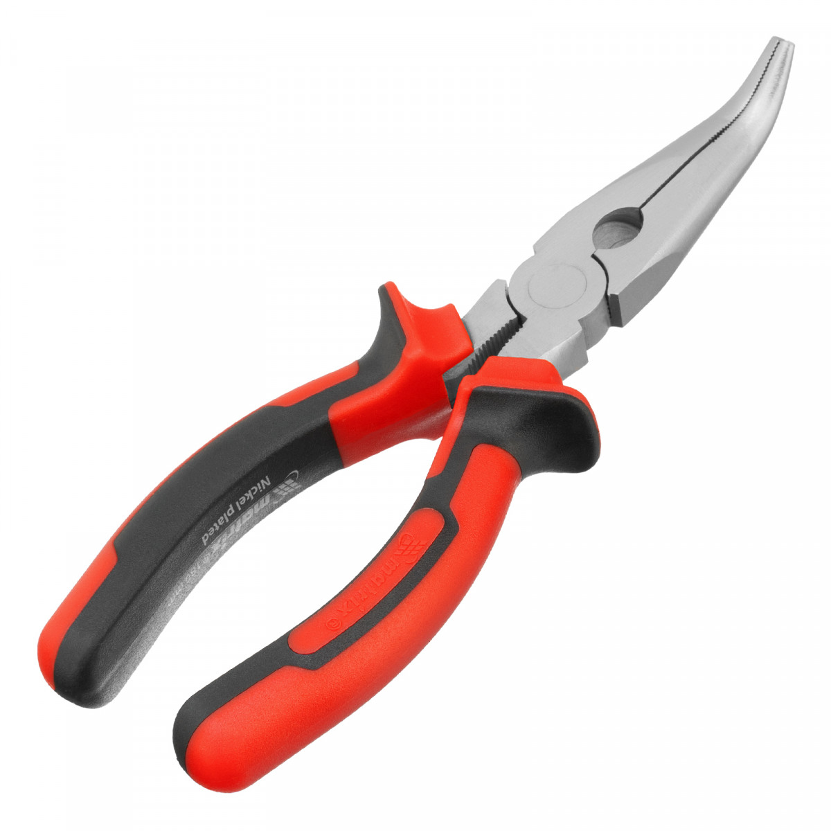 Длинногубцы изогнутые Nickel, 180 мм, никелированные, двухкомпонентные рукоятки Matrix