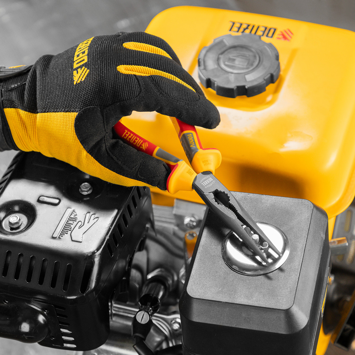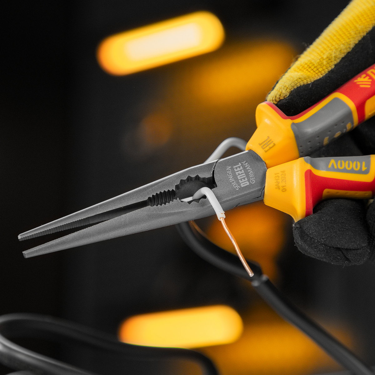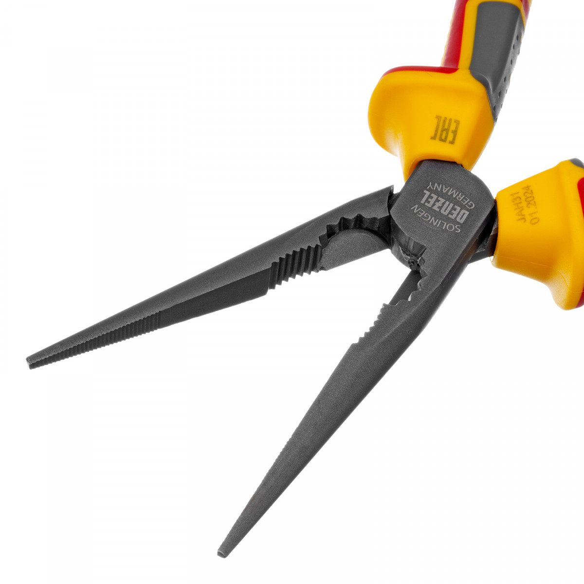 Длинногубцы прямые, диэлектрические рукоятки до 1000 В, трехкомпонентные рукоятки, 205мм Denzel