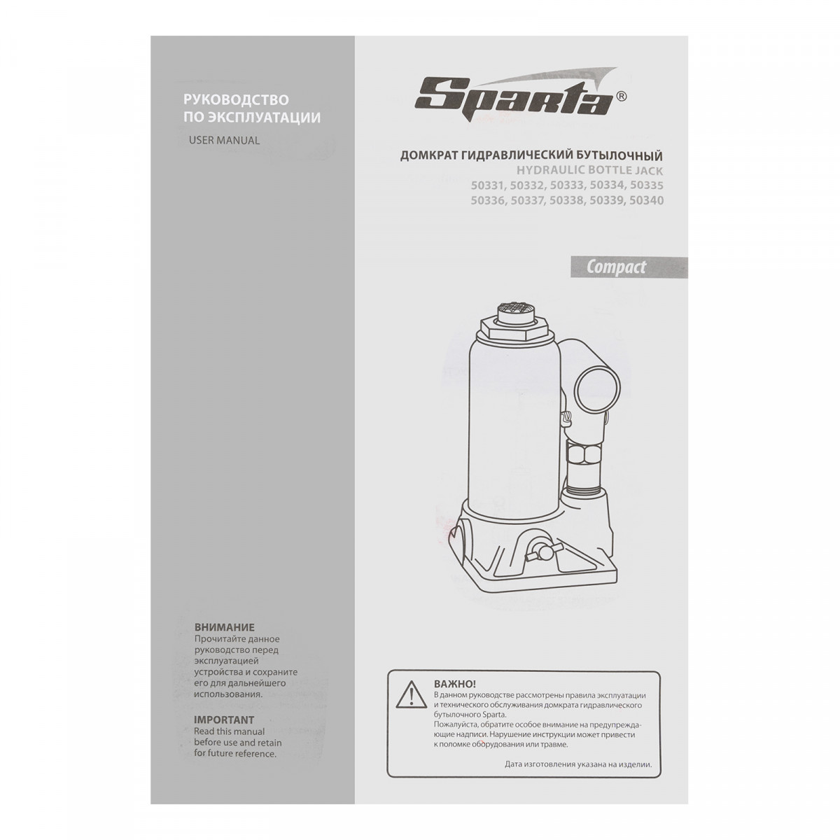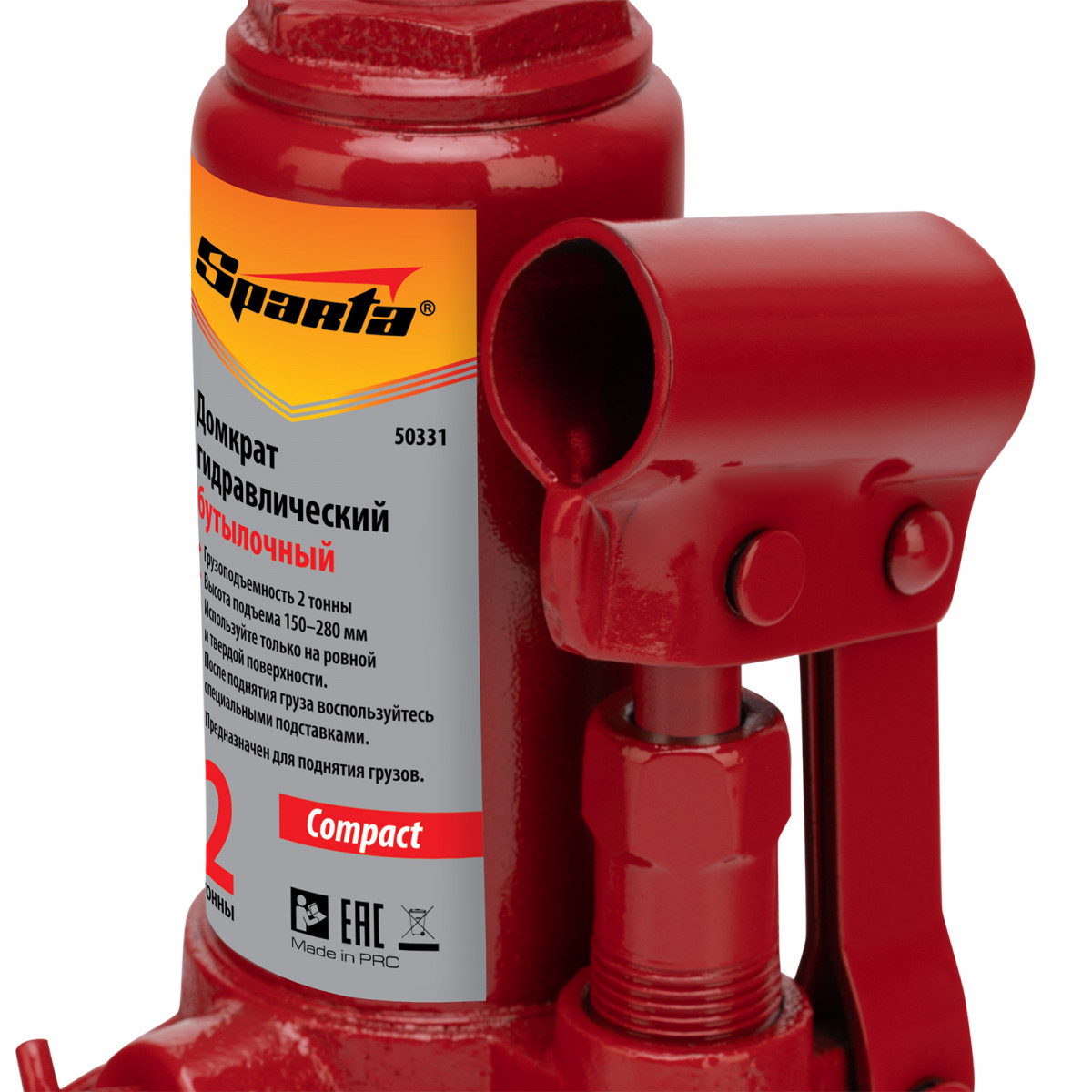 Домкрат гидравлический бутылочный 2 т, h подъема 150-280 мм Sparta Compact