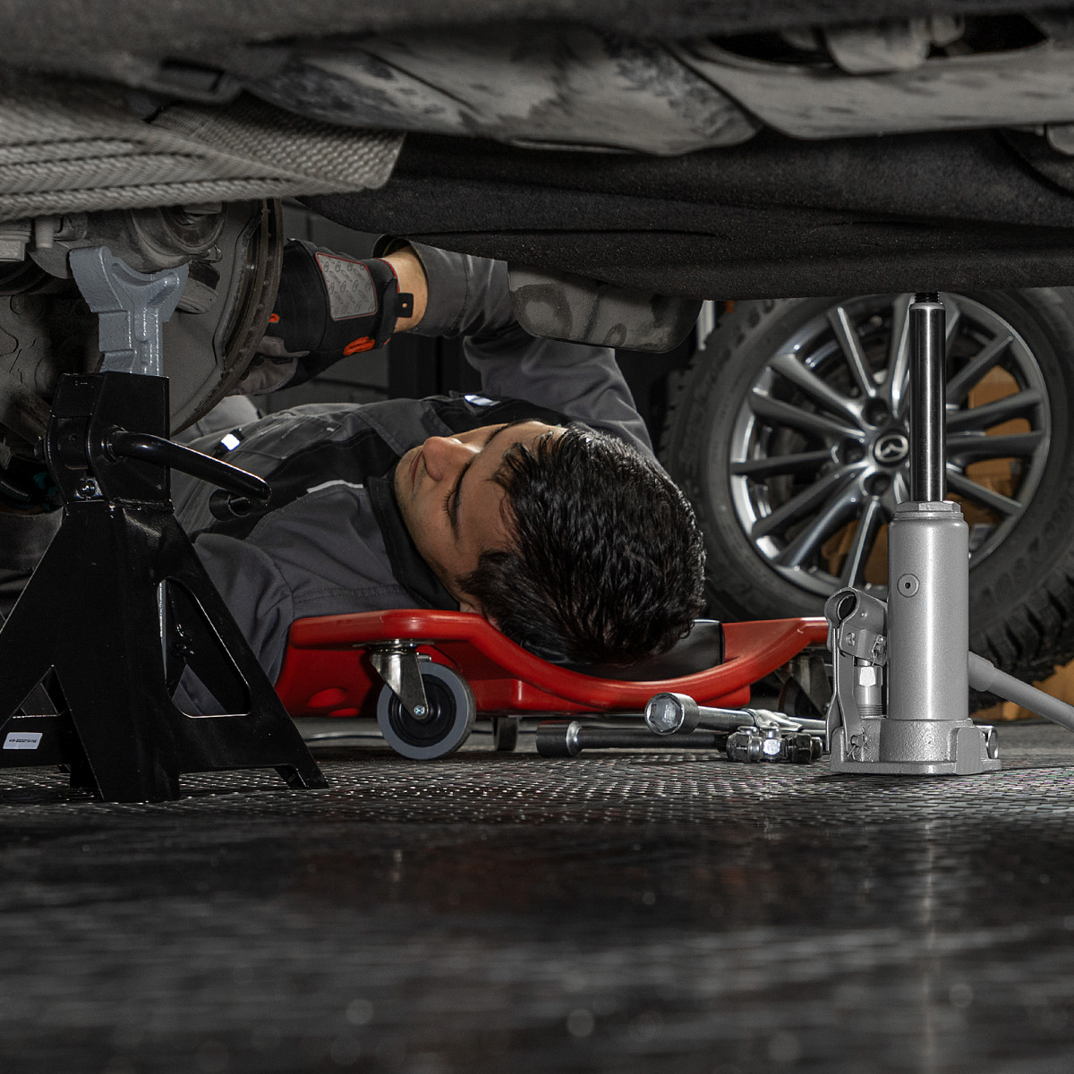 • Удобное хранение и транспортировка — домкрат поставляется в прочном пластиковом кейсе с ручкой.