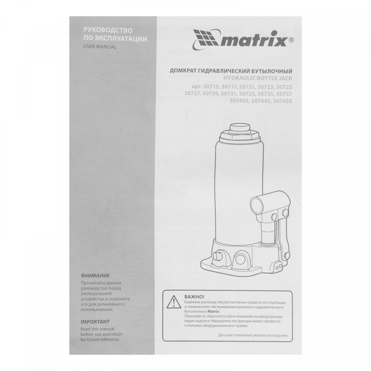 Домкрат гидравлический бутылочный, 25 т, высота подъема 230-360 мм Matrix