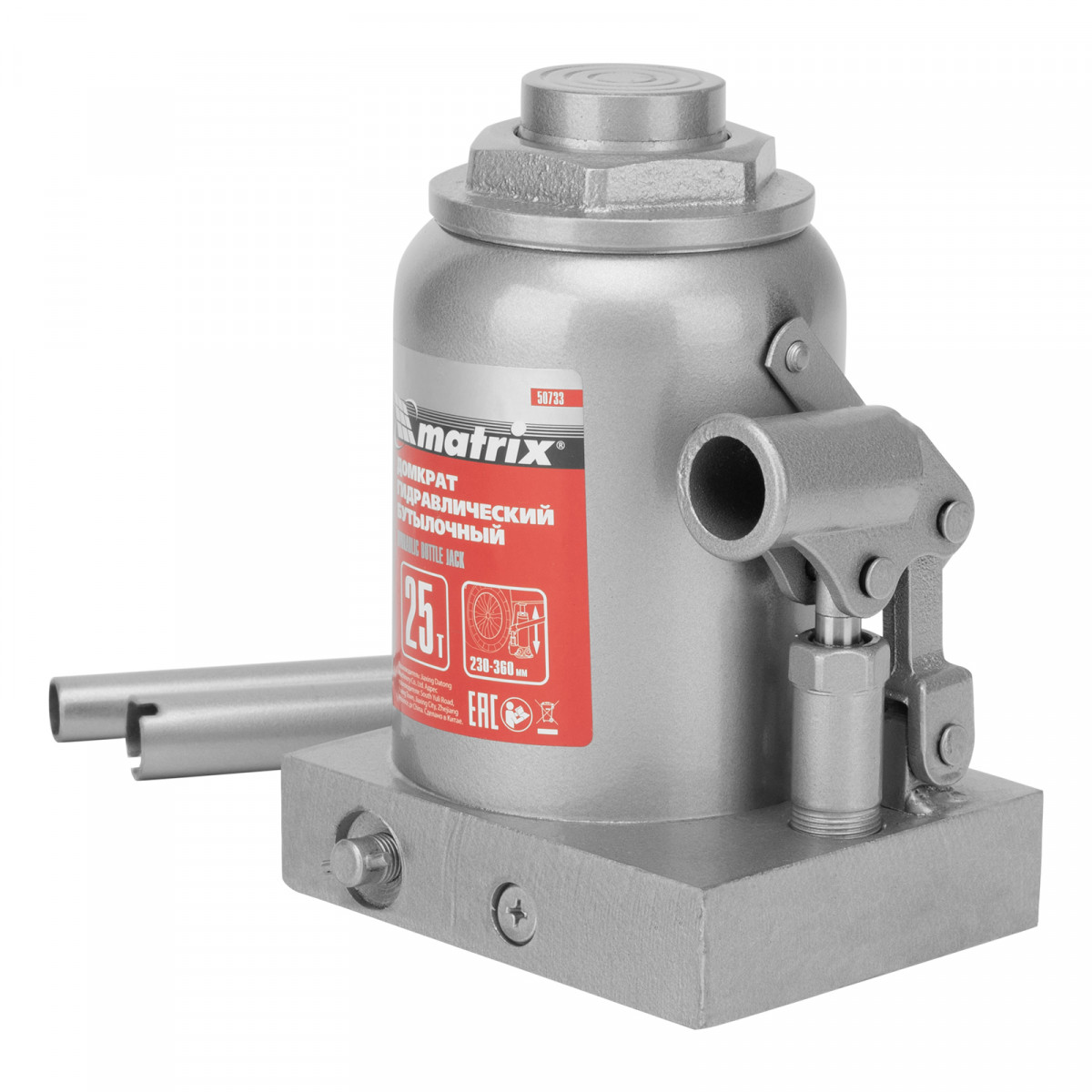 Домкрат гидравлический бутылочный Matrix 50733 используется для поднятия грузов массой до 25 т на высоту 230-360 мм. Подходит для автомобилей с высоким клиренсом. Домкрат будет полезен автолюбителям в гараже и дороге, а также сотрудникам СТО.