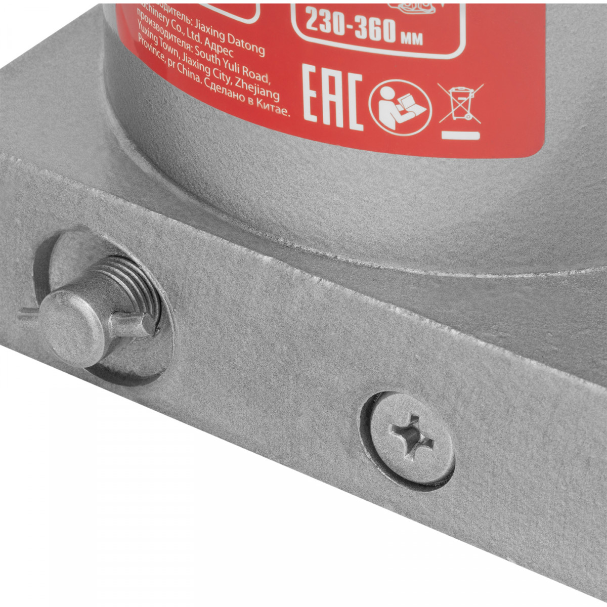 - Надежная конструкция — домкрат имеет устойчивое чугунное основание, корпус из высокопрочной стали, а также полированный шток, увеличивающий срок службы.