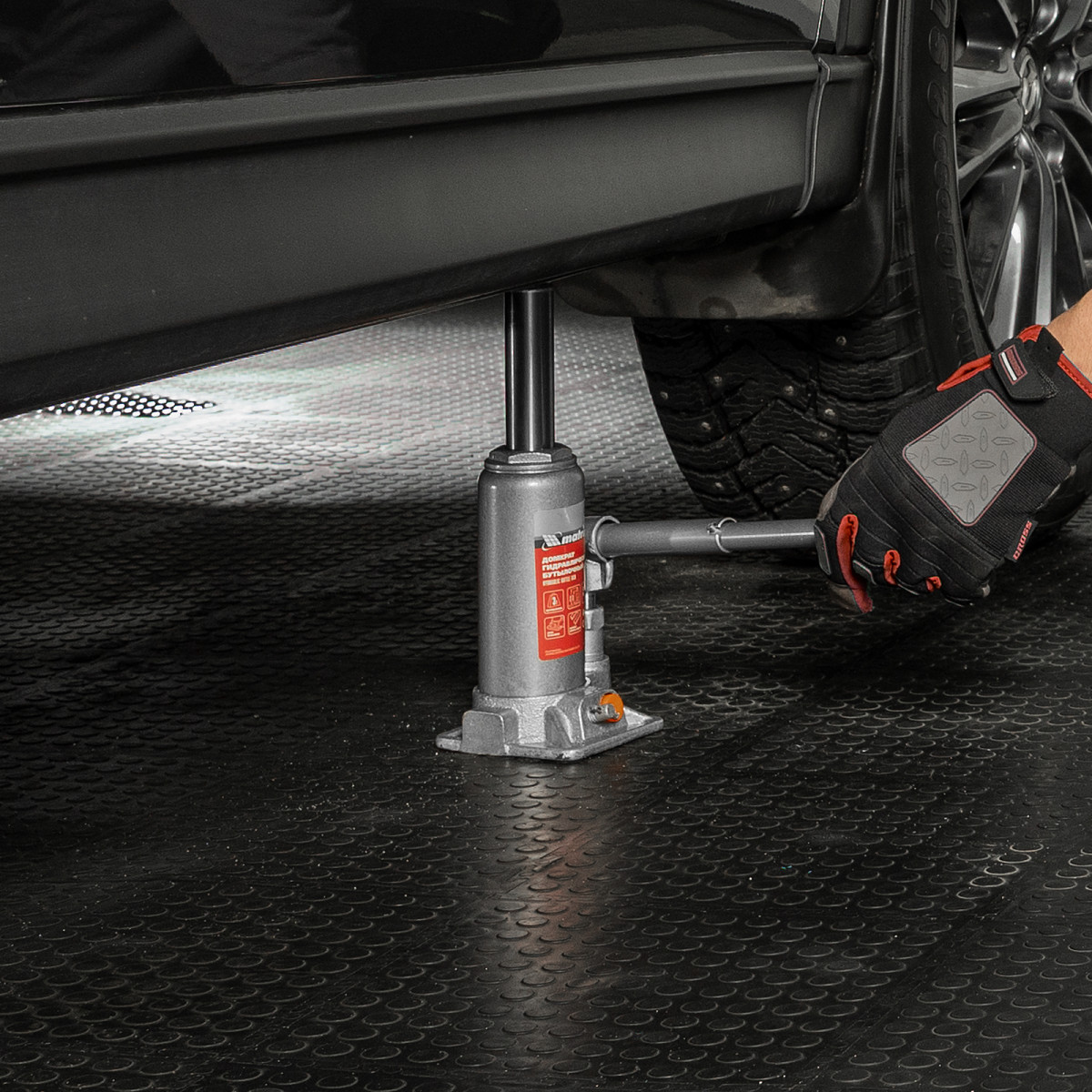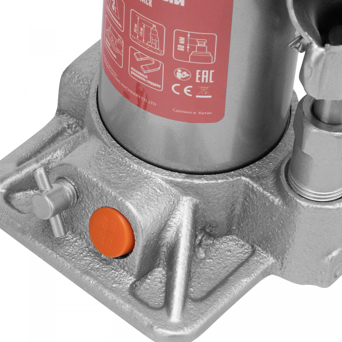 • Безопасность — предохранительный клапан защищает домкрат от перегрузок, не позволяя поднимать автомобиль массой более 3000 кг.