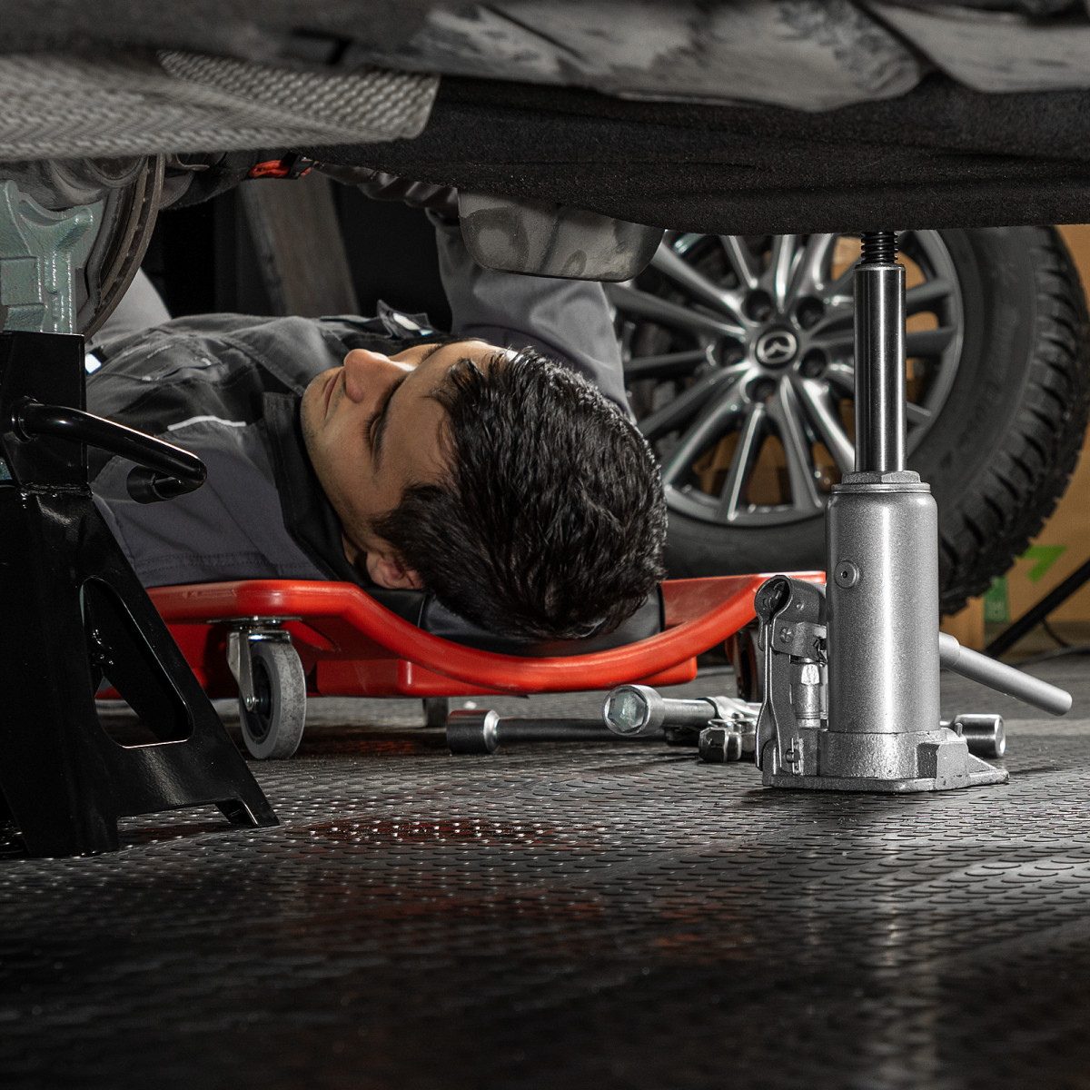 • Удобная транспортировка — домкрат комплектуется прочным пластиковым кейсом.