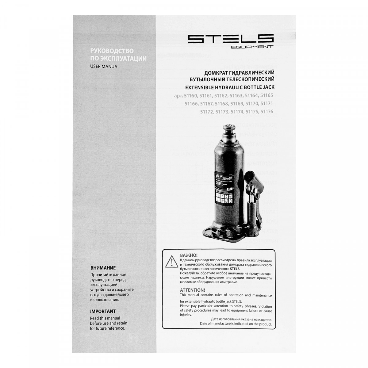 Домкрат гидравлический бутылочный, 3 т, h подъема 188-363 мм Stels