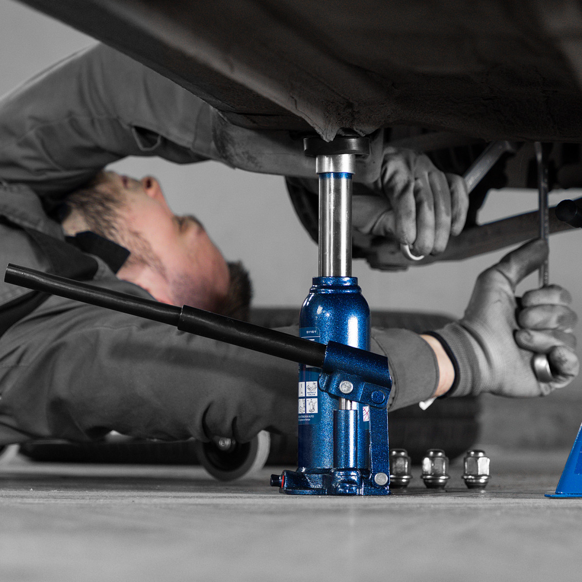 • Безопасная эксплуатация — благодаря предохранительному клапану домкрат не поднимает грузы тяжелее 3000 кг.