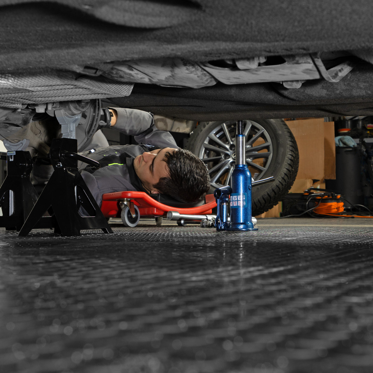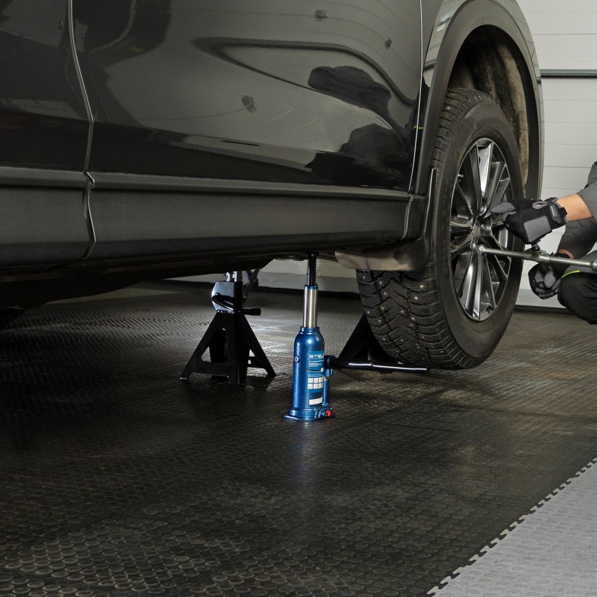 • Удобное хранение и транспортировка — домкрат поставляется в пластиковом кейсе.